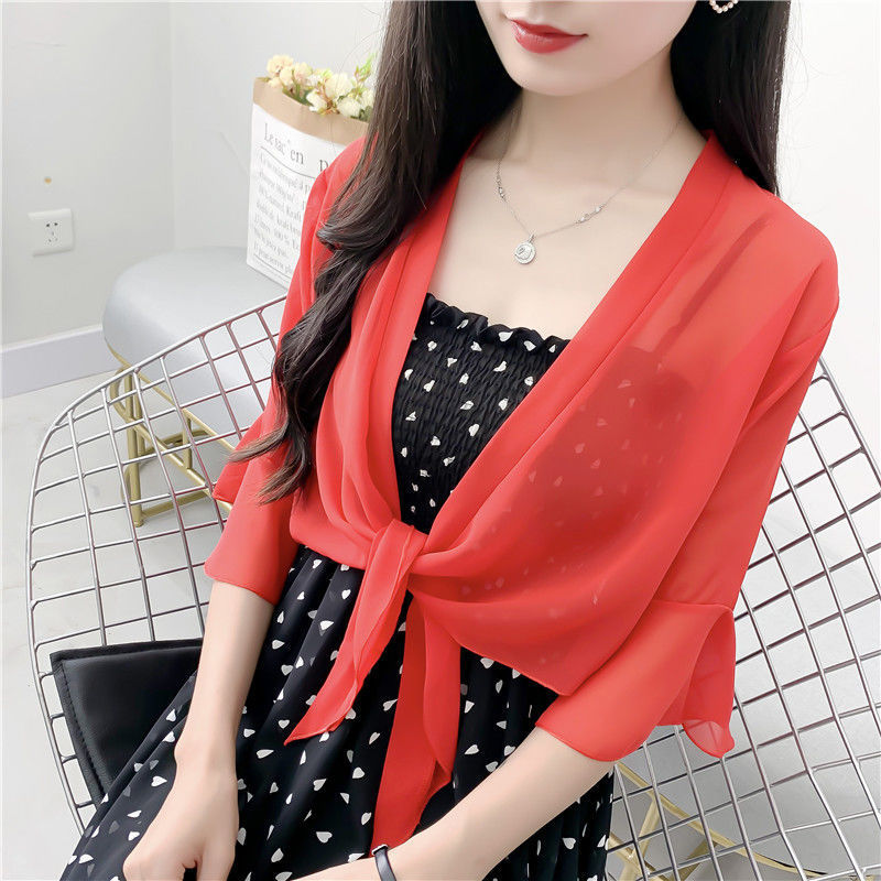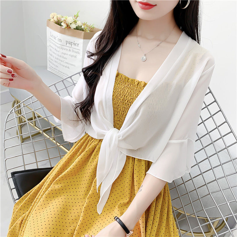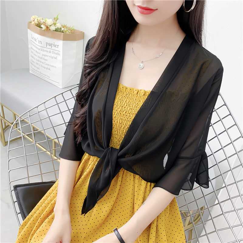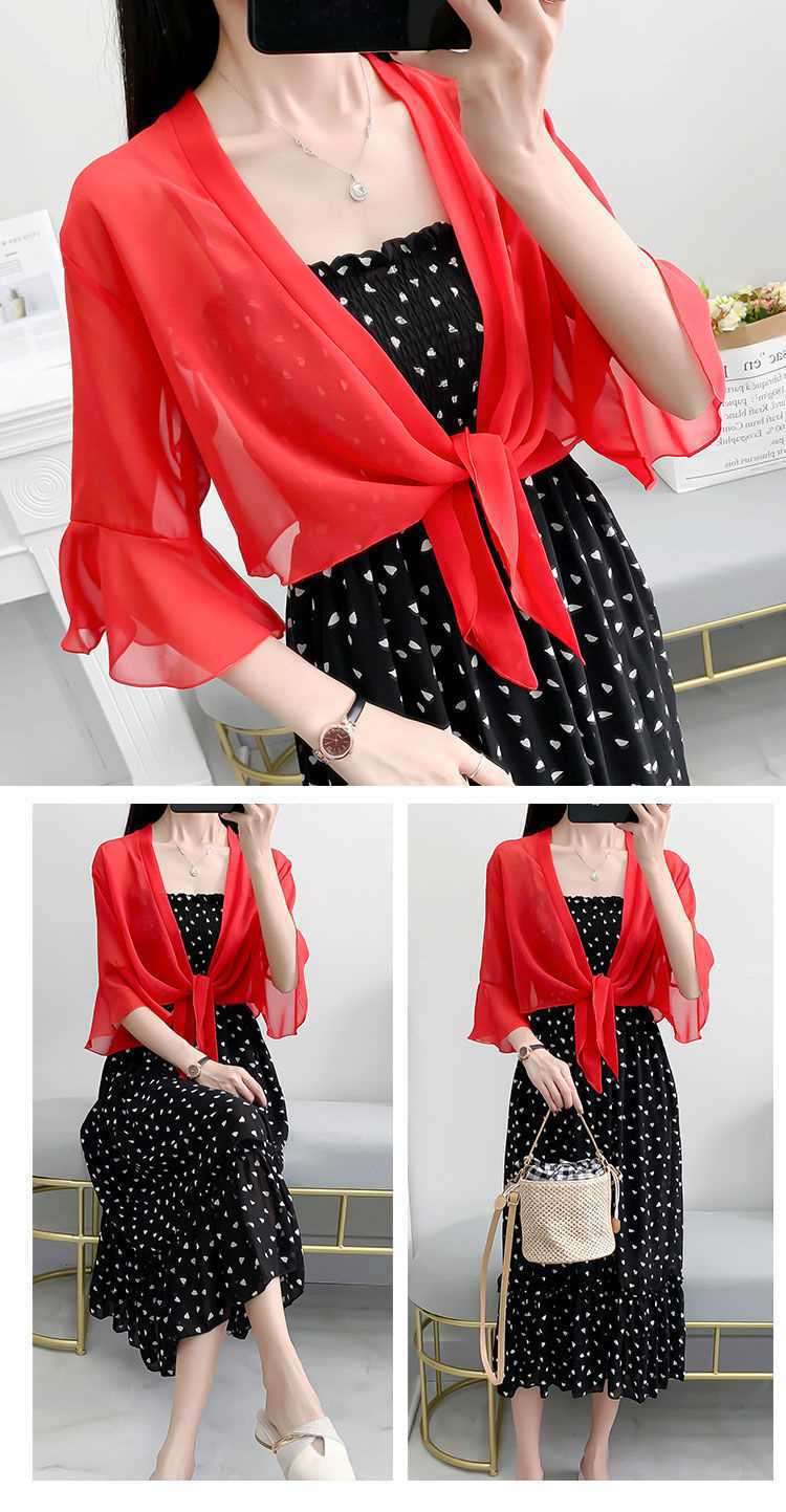 시폰 코트 여성용 여름 짧은 아우터 슬링 스커트와 얇은 카디건 작은 목도리 레이스 선스크린 의류스토어 가기