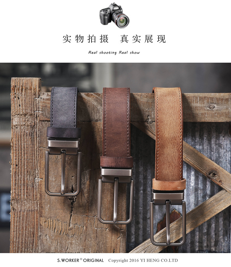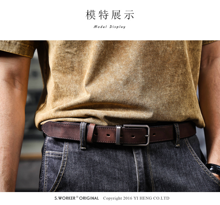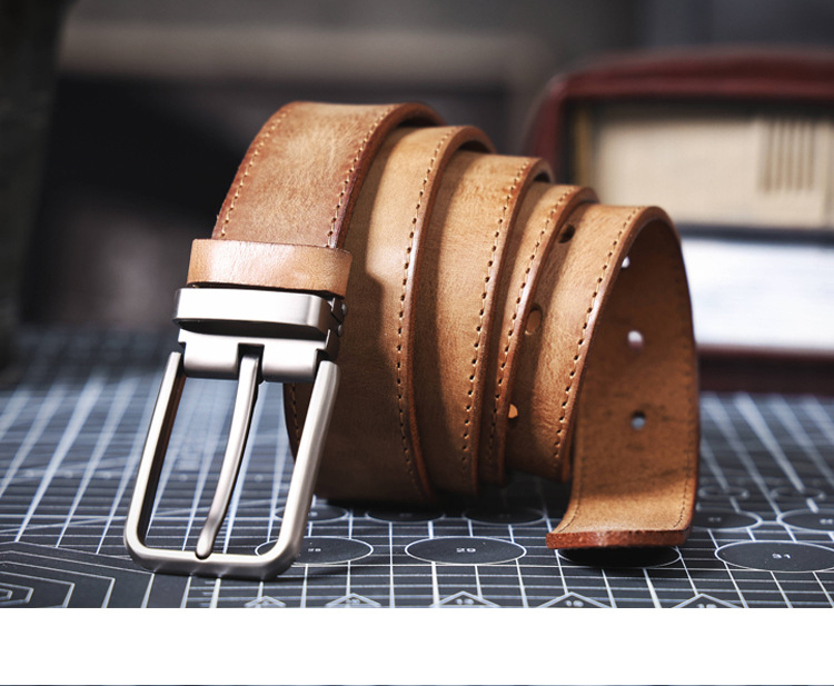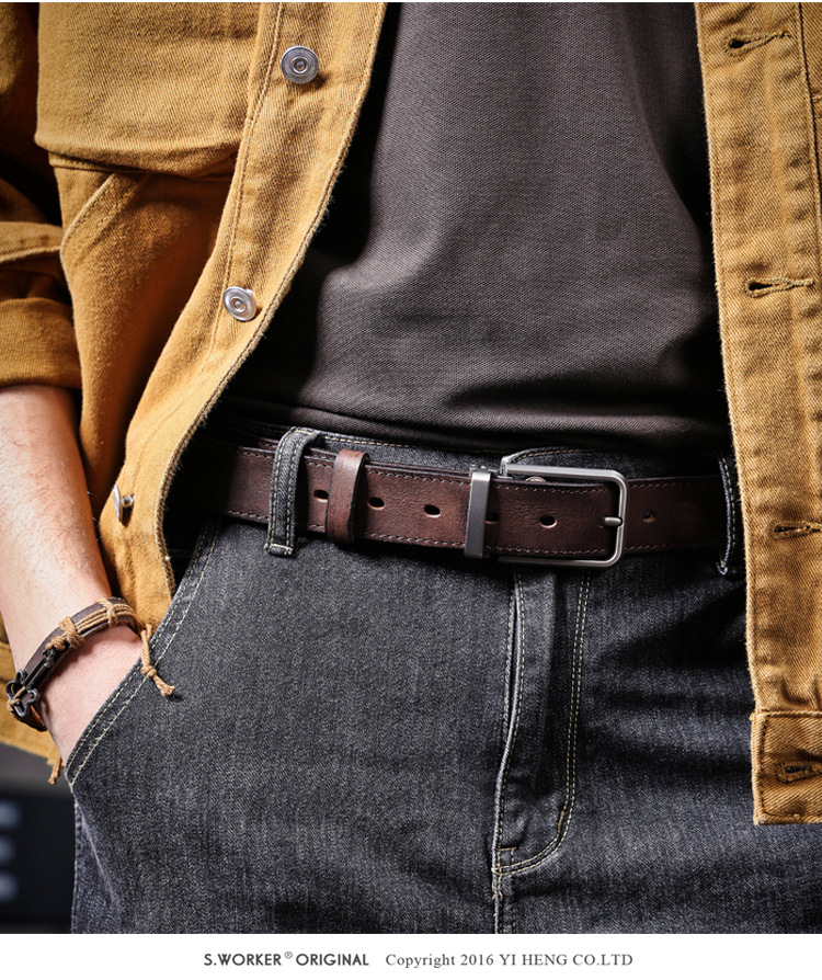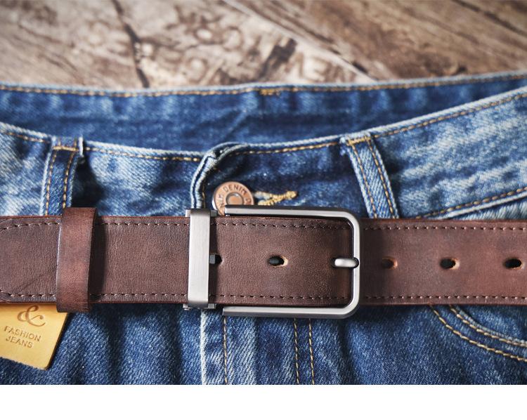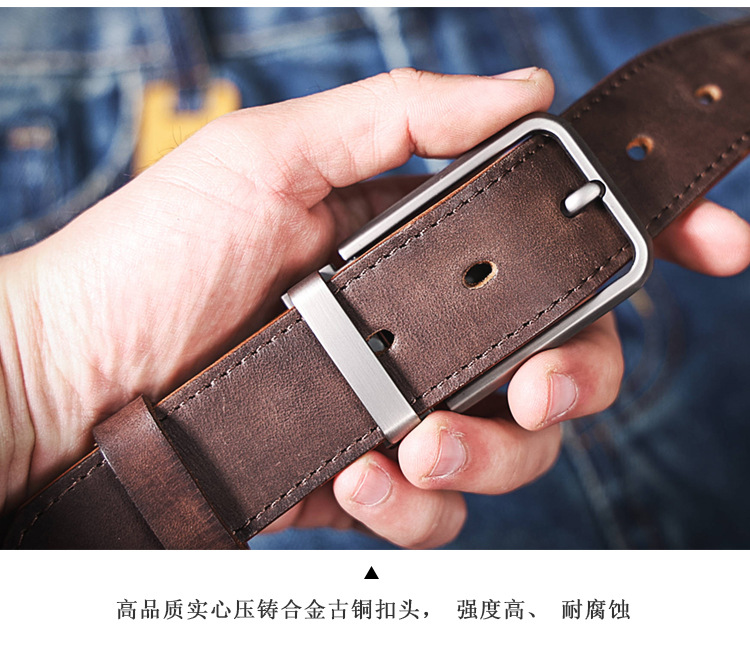 빈티지 캐주얼 탑 레이어 카우보이 남성 벨트 합금 버클 벨트 클립 수제 가죽 벨트 간단한 올 매치 트렌디스토어 가기