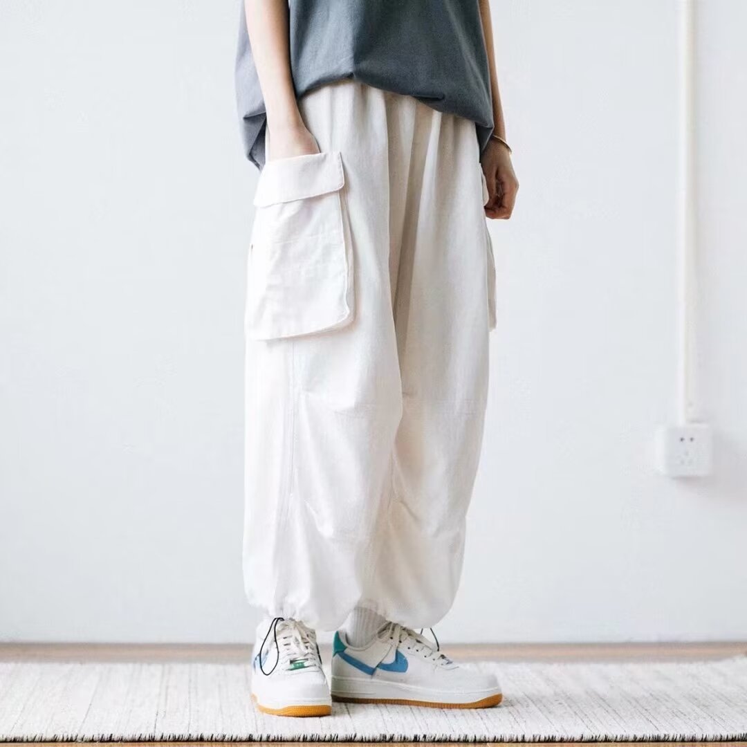 펜던트 와이드 레그 오버롤 남성용 한국식 패셔너블 일본식 심플한 대형 포켓 루즈 캐주얼 발목 길이 바지 스트레이트 바지