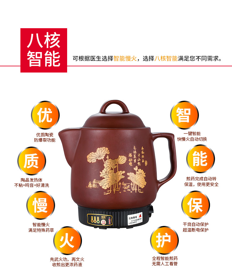 완전 자동 보라색 모래 달인 냄비 가정용 전기 달인 한약 플러그인 약 냄비 기계 끓는 캐서롤스토어 가기