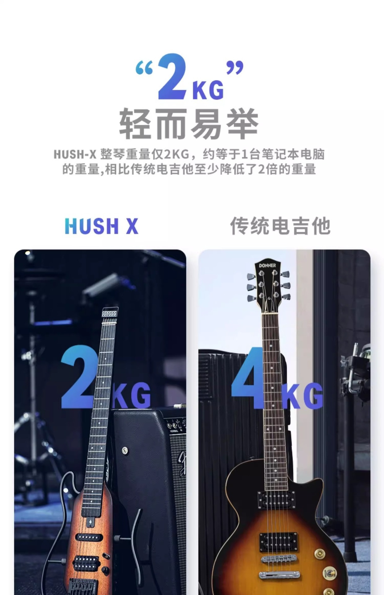 DONNER 일렉트릭 기타 HUSHX 헤드리스 일렉트릭 기타 초급 학생 전문가급 시리즈 록 입문스토어 가기