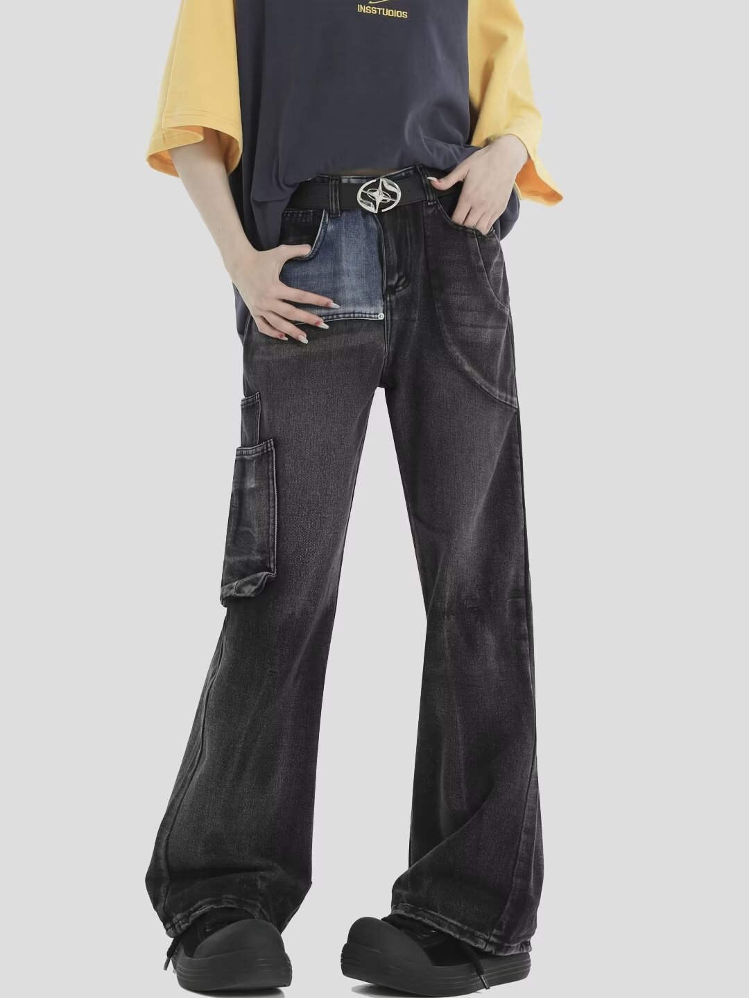 미국 스타일 복고풍 오래된 마이크로 스트레이트 튜브 유행 데님 새로운 모든 경기 느슨한 긴 유행 캐주얼 바지 남성과 여성스토어 가기