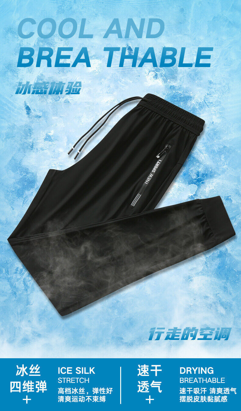 여름 아이스 실크 바지 남자의 빠른 건조 얇은 캐주얼 바지 플러스 사이즈 느슨한 스트레이트 레그 스포츠 바지 올 매치 바지