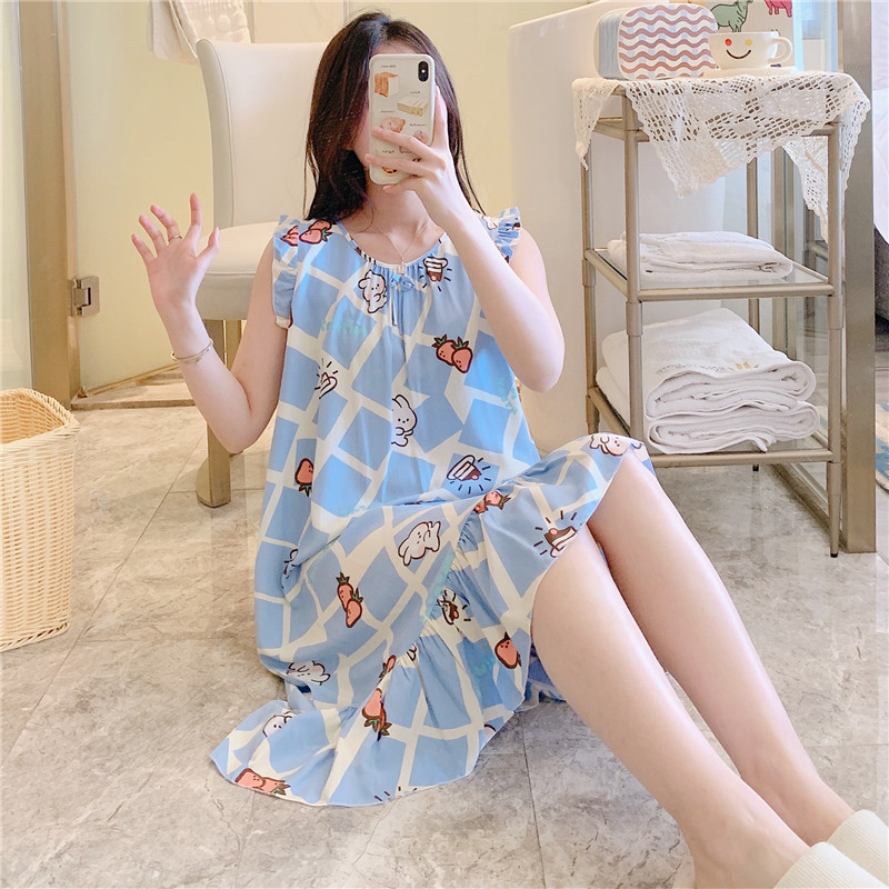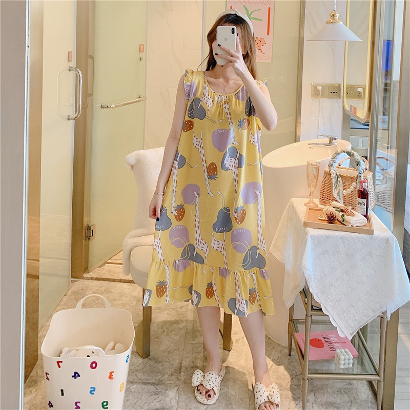 YY 새로운 공주 스타일 면 실크 나이트 드레스 여성 여름 학생 임산부 만화 플러스 사이즈 나이트 드레스 달콤한 귀여운 홈 옷스토어 가기