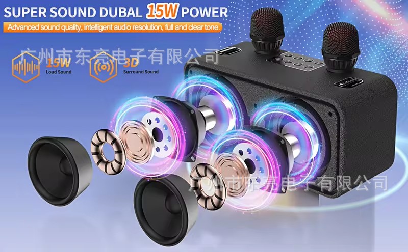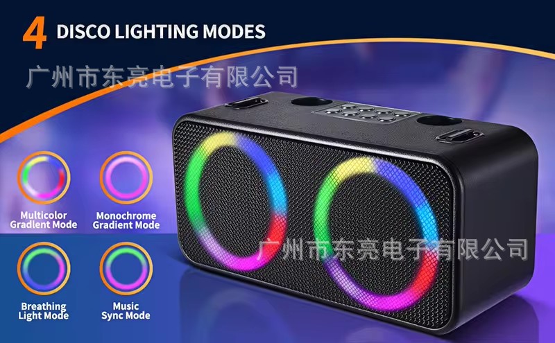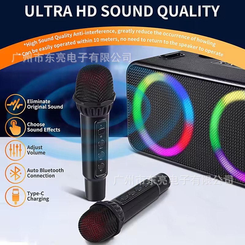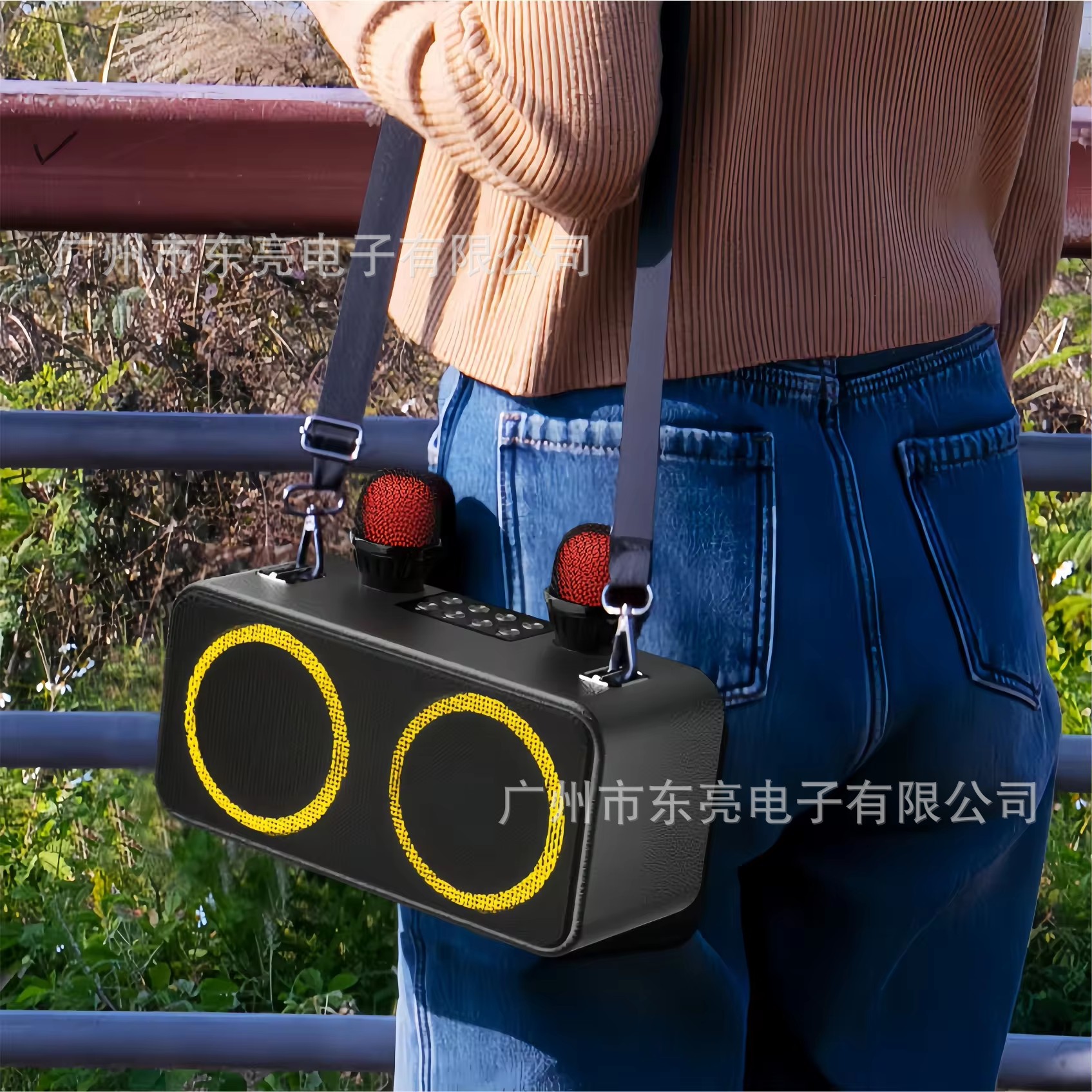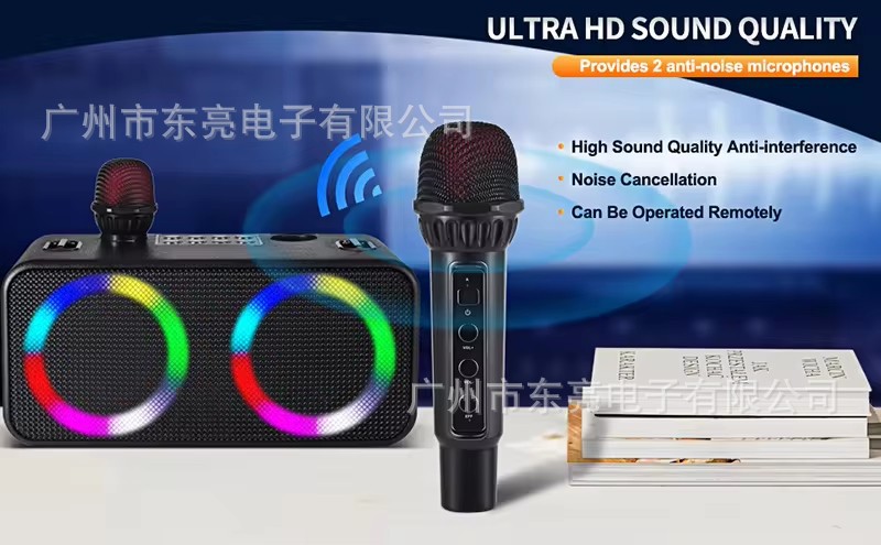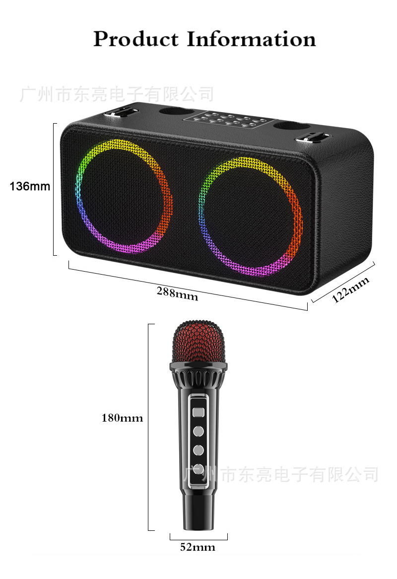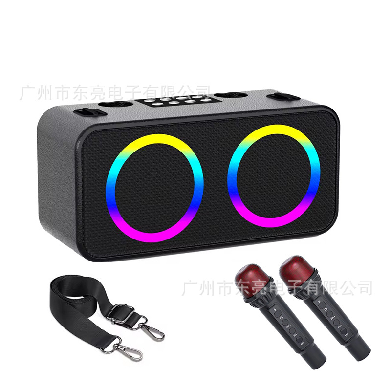 Cross border new product high-power Bluetooth wireless home audio outdoor portable dual microphone integrated karaoke color light speaker