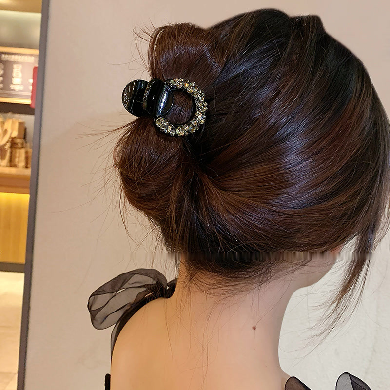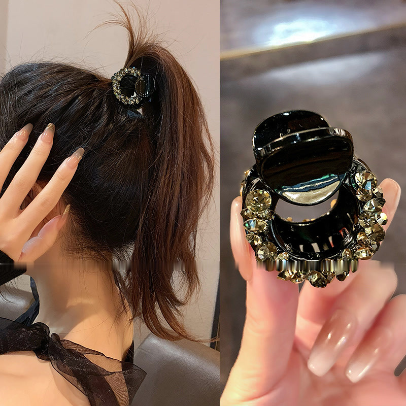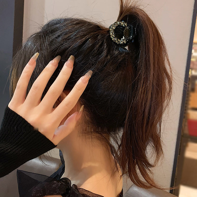 패션 인터넷 레드 블랙 스몰 그랩 클립 여성의 하이 엔드 센스 다이아몬드 백 헤드 하프 그랩 헤어핀 우아한 포니 테일 클립 헤드웨어