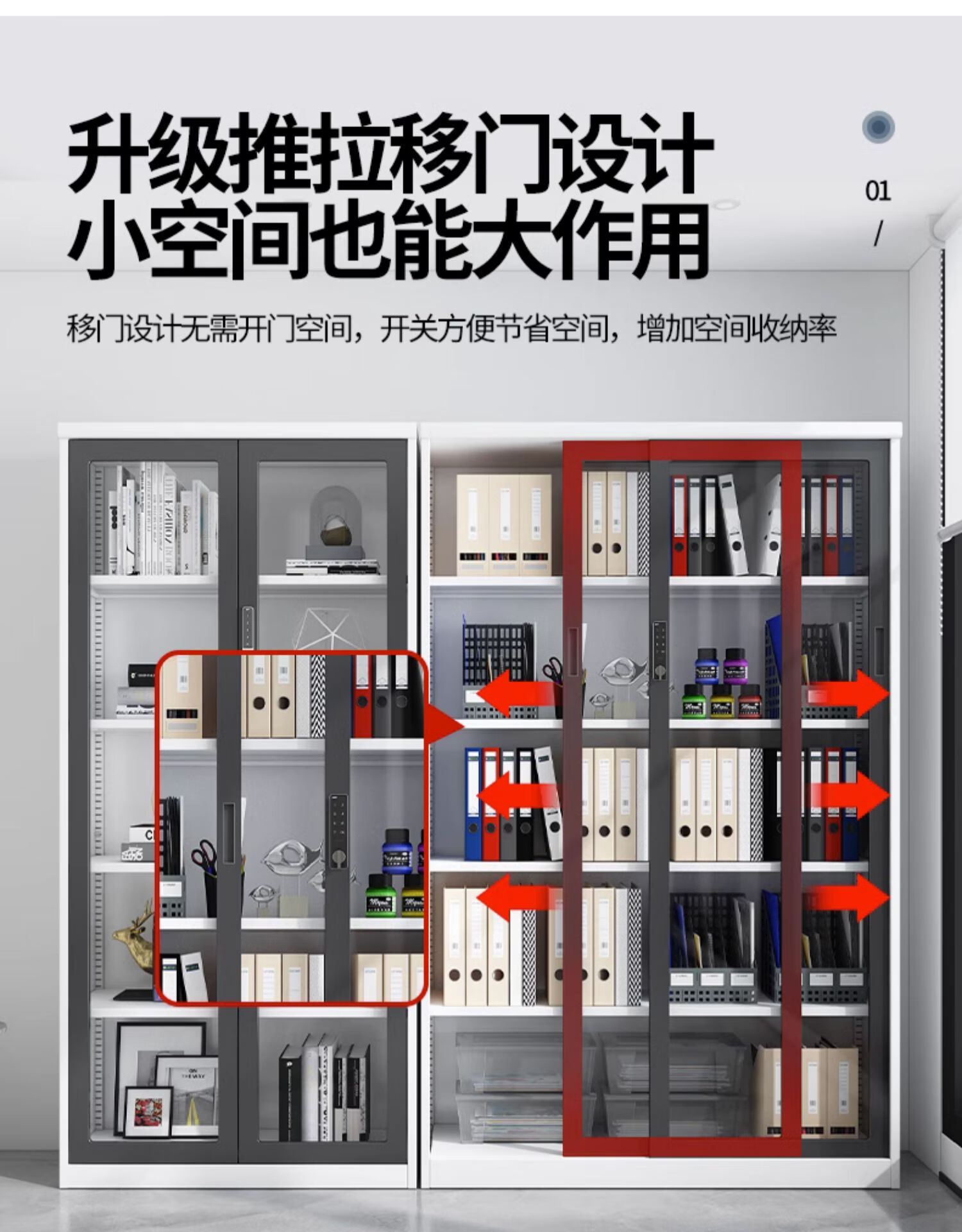 • 슬라이딩 도어 유리 파일 캐비닛 높이 180*너비 100팩 설치