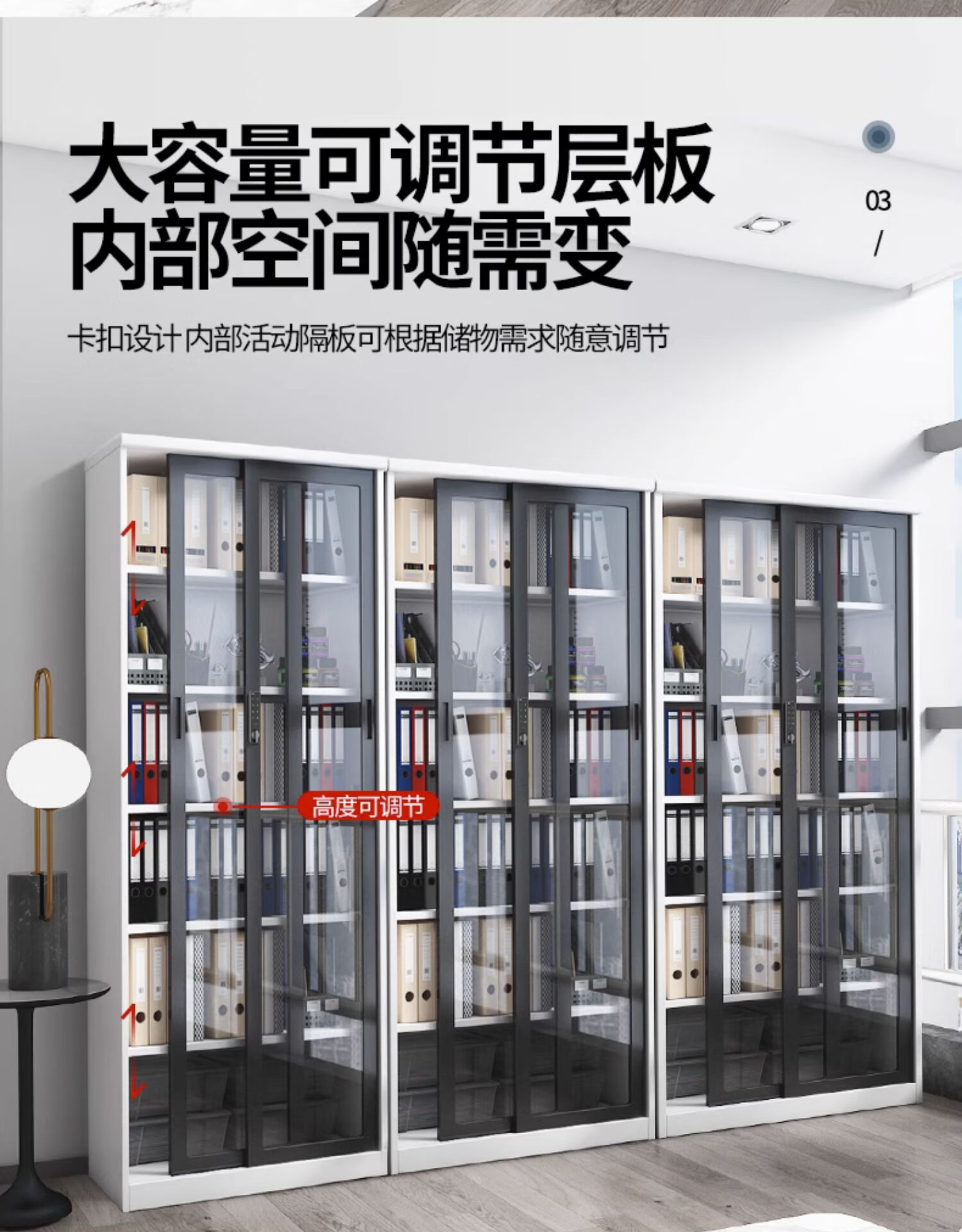 • 슬라이딩 도어 유리 파일 캐비닛 높이 180*너비 120 패키지 설치