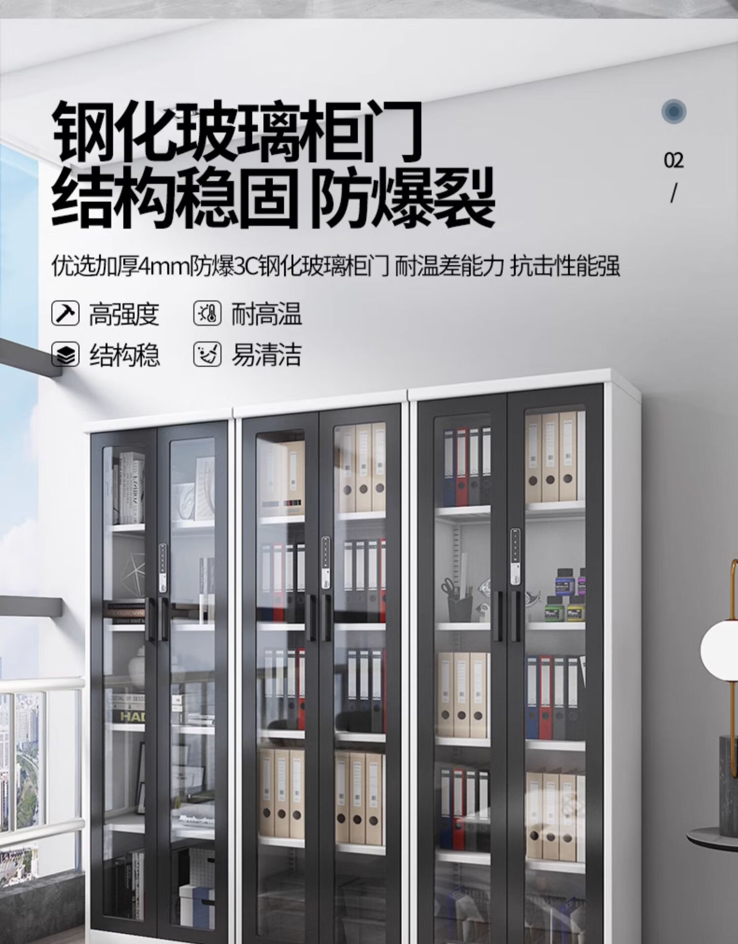 • 폴리오 유리 파일 캐비닛, 높이 180*폭 80 패키지 설치