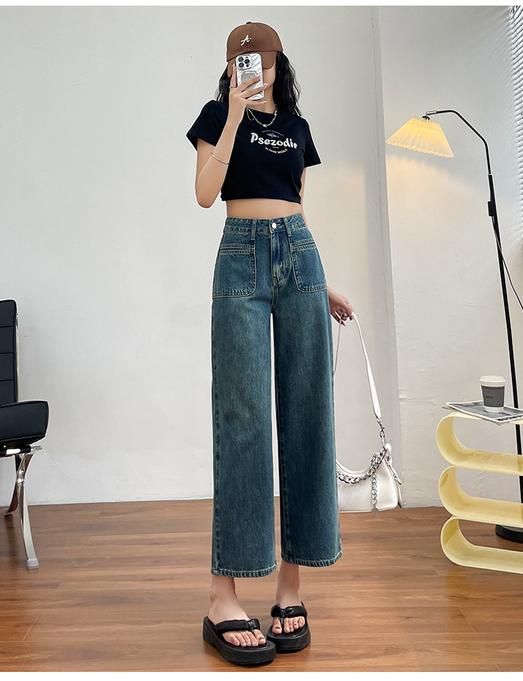 5956 작은 키 여성을 위한 여름용 하이웨이스트 슬림핏 레그롱 루즈핏 와이드 데님 팬츠 여성용 스트레이트 레그스토어 가기