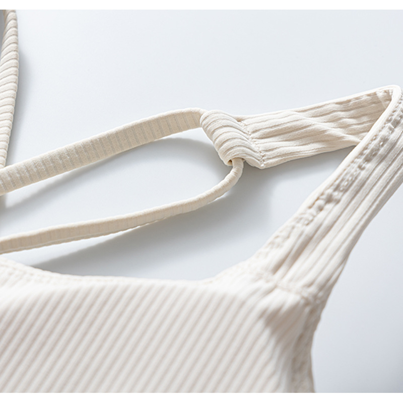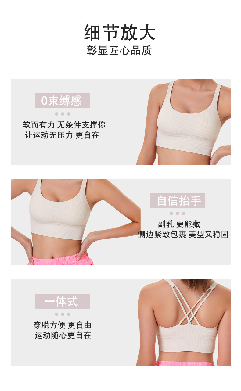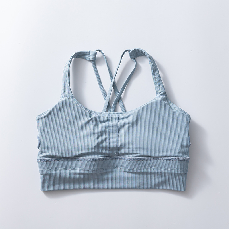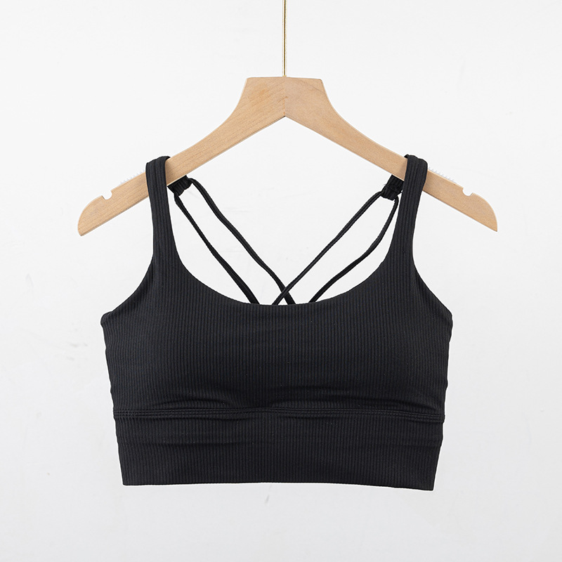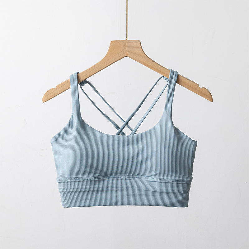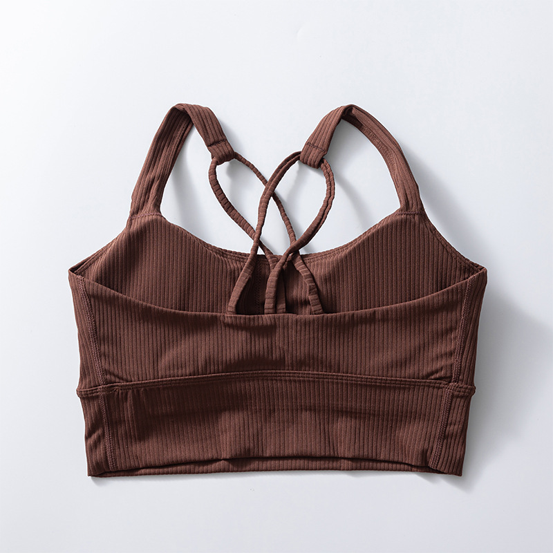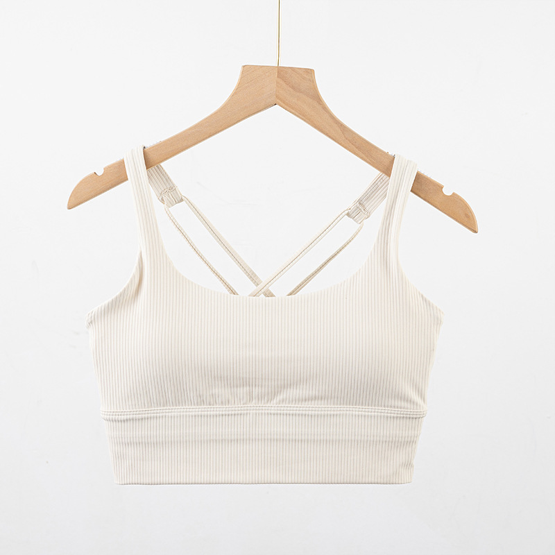 가슴 패드가 있는 여성용 새로운 골지 아름다운 등받이 스포츠 브라, 여름 중강도 요가 피트니스 트레이닝 충격 방지 브라스토어 가기