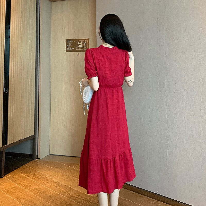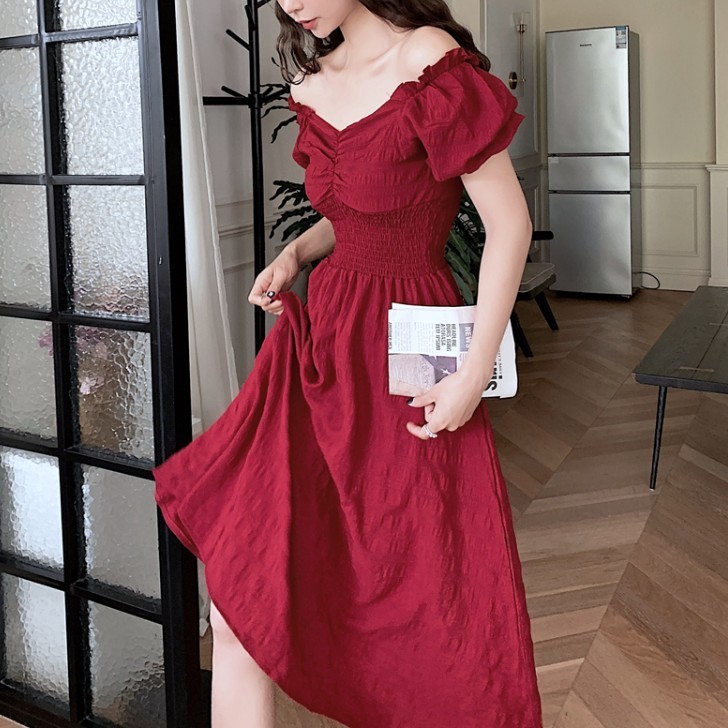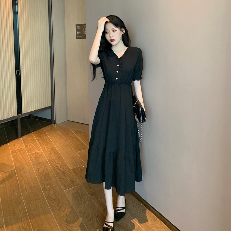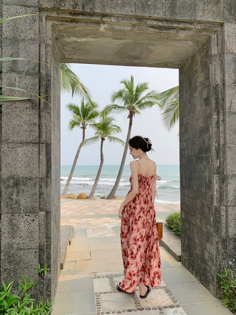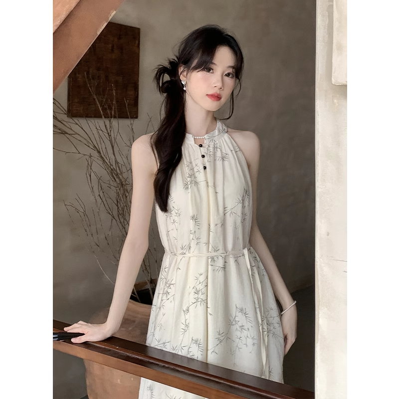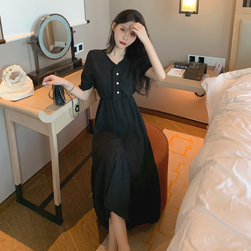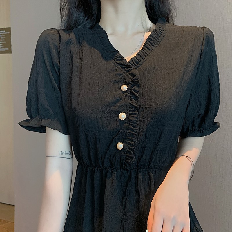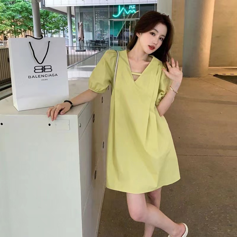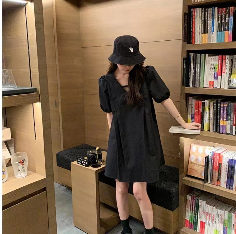 BX 뉴 원피스 여성 여름 쉬폰 플로럴 V 넥 타이트 허리 슬리밍 우아한 긴 무릎 위 A 자형 원피스스토어 가기