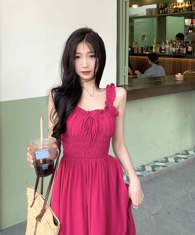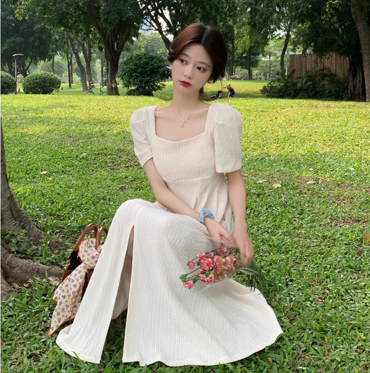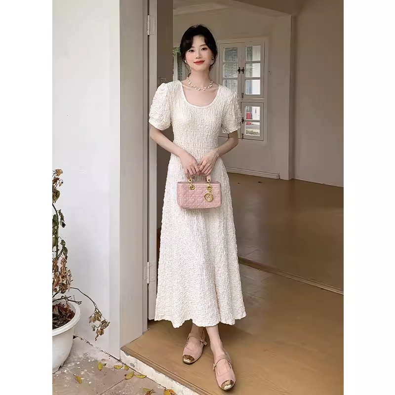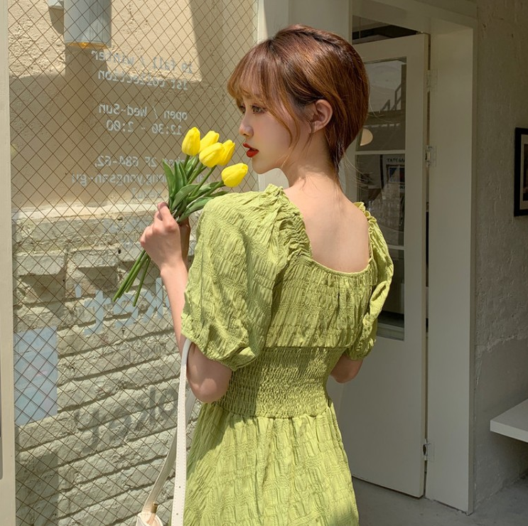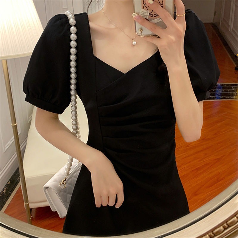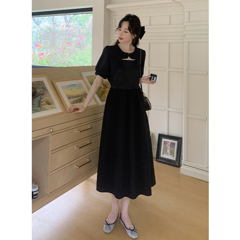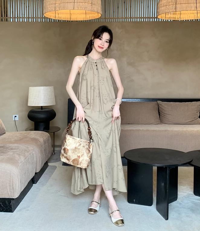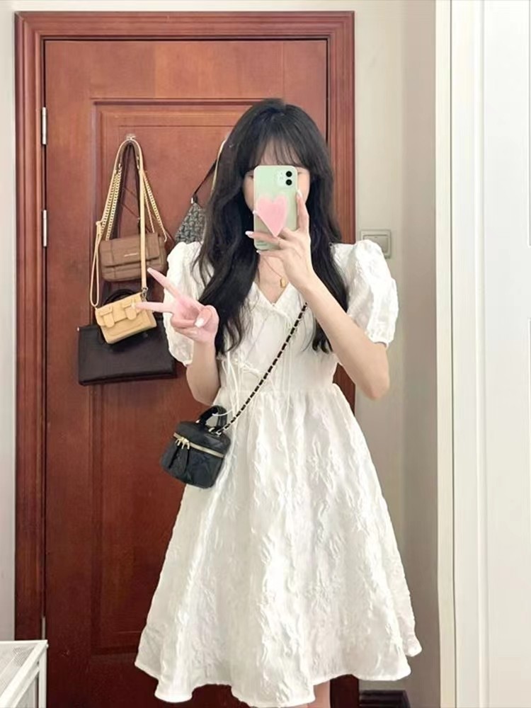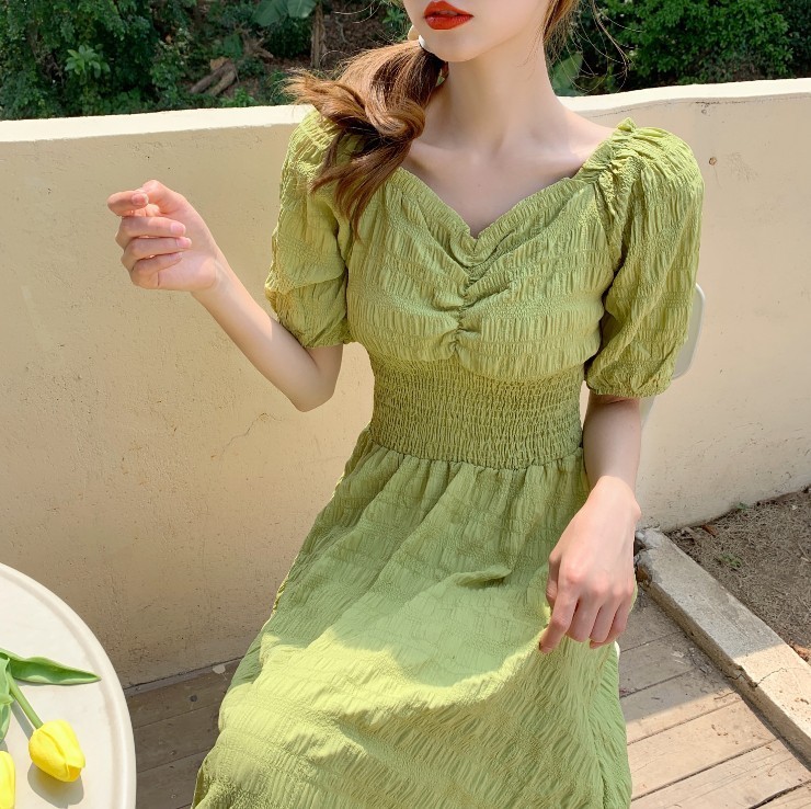 BX 뉴 원피스 여성 여름 쉬폰 플로럴 V 넥 타이트 허리 슬리밍 우아한 긴 무릎 위 A 자형 원피스스토어 가기