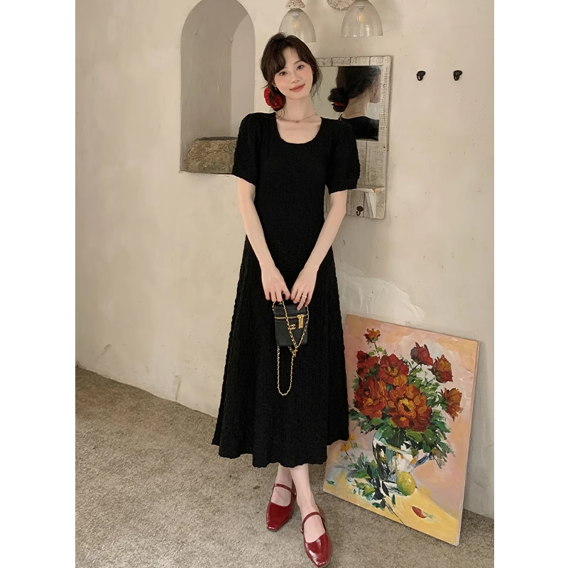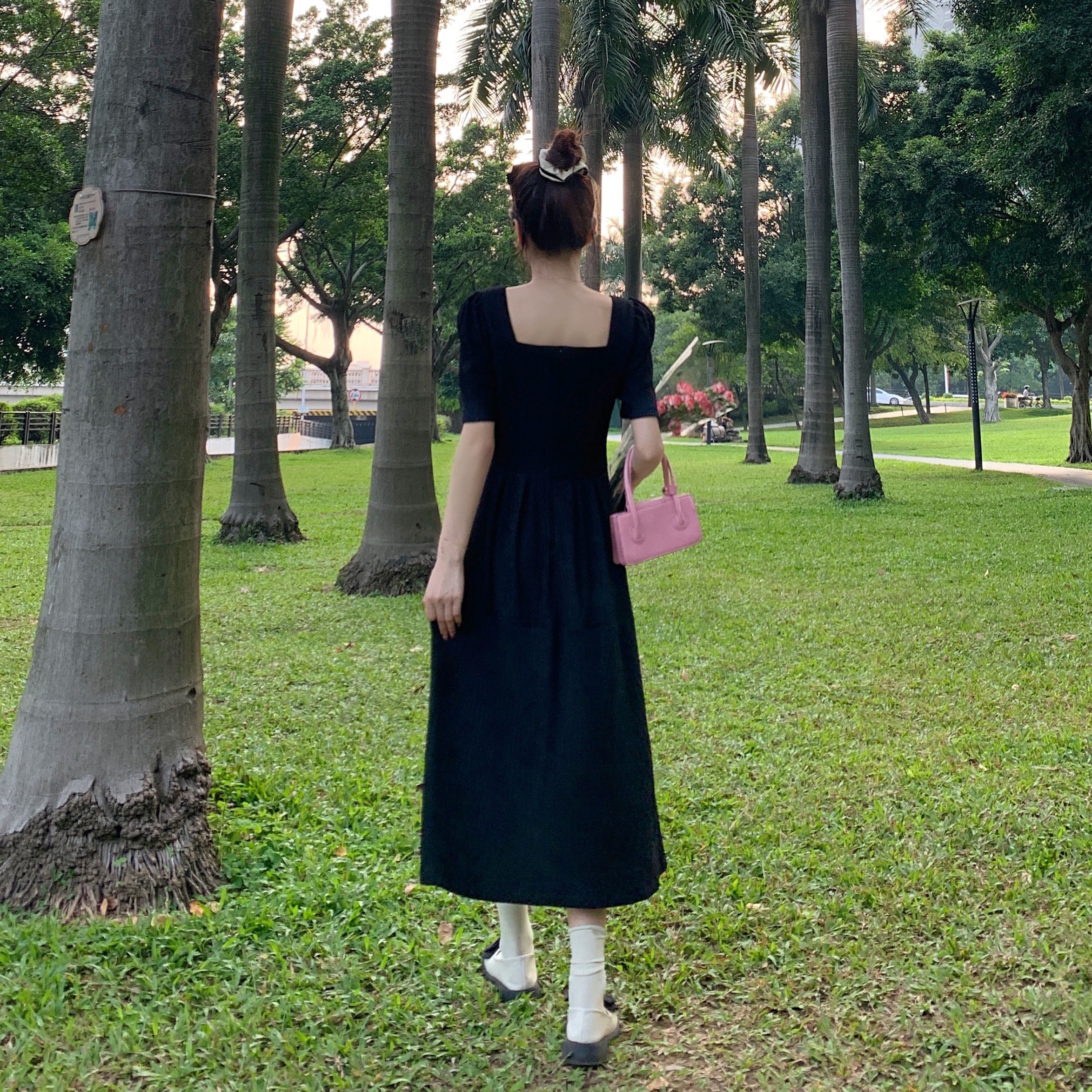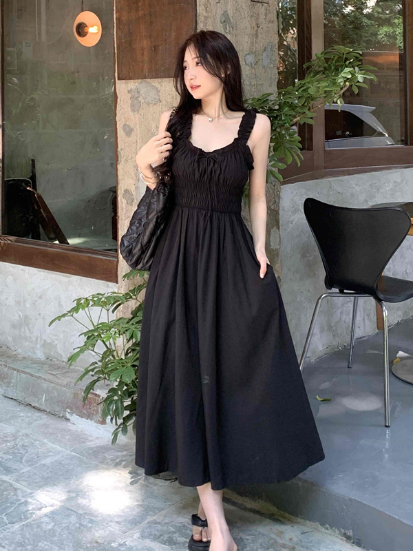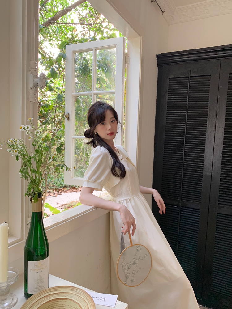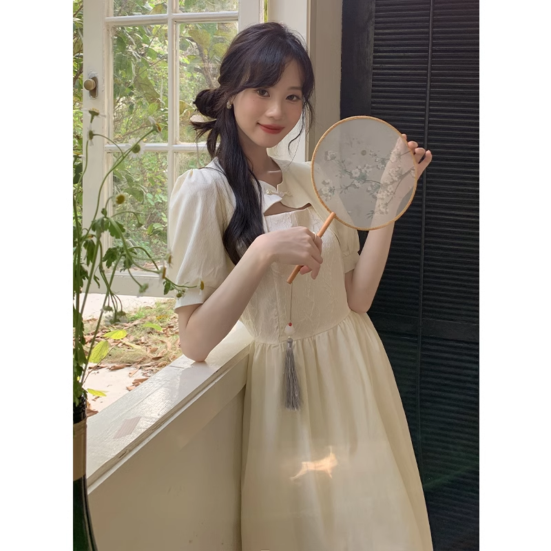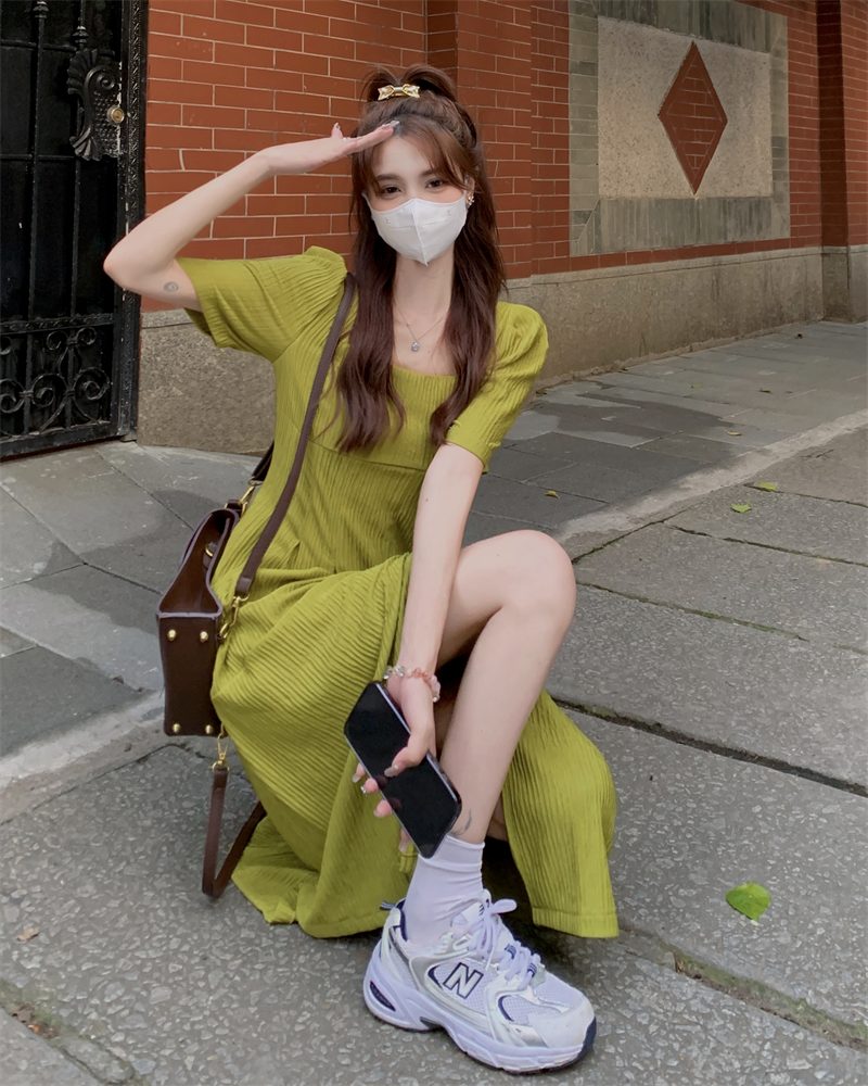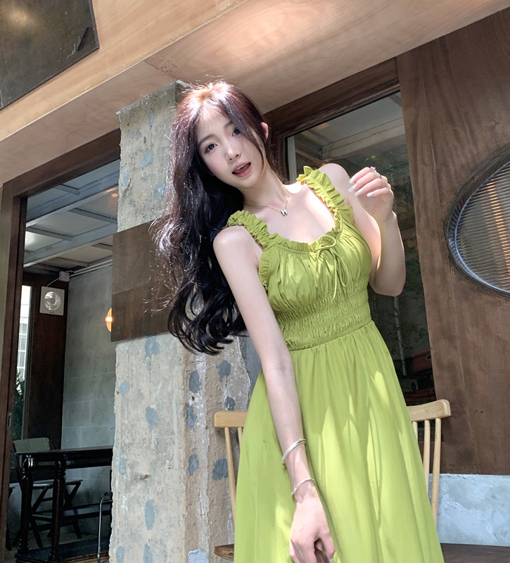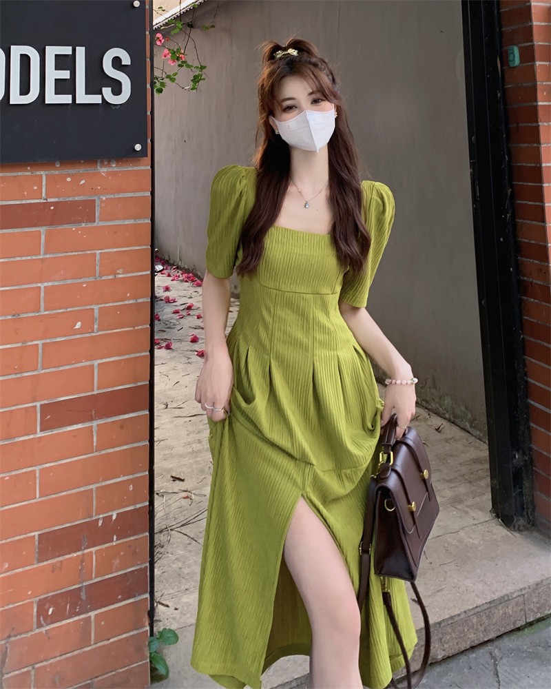 BX 뉴 원피스 여성 여름 쉬폰 플로럴 V 넥 타이트 허리 슬리밍 우아한 긴 무릎 위 A 자형 원피스스토어 가기