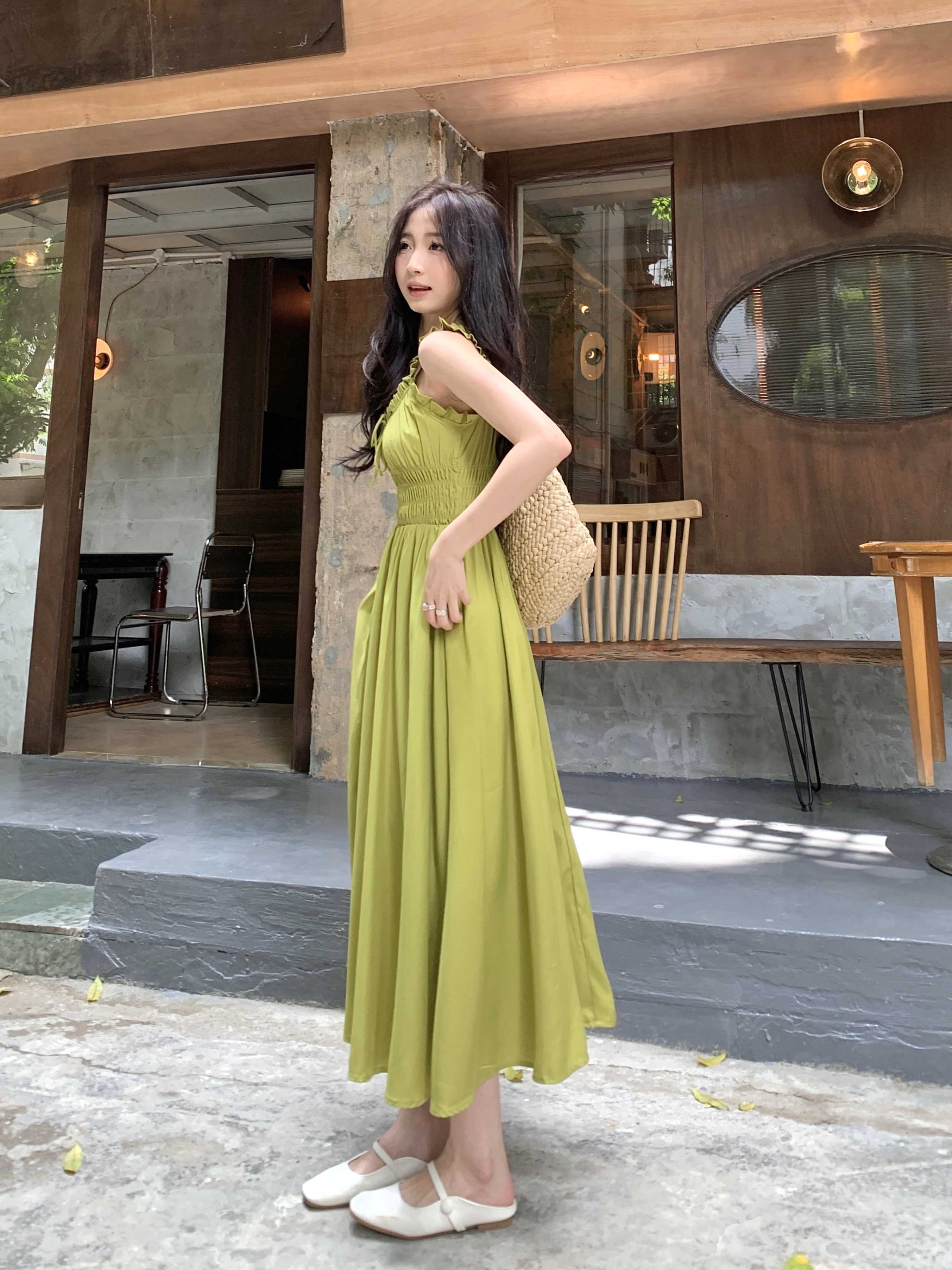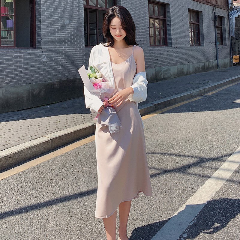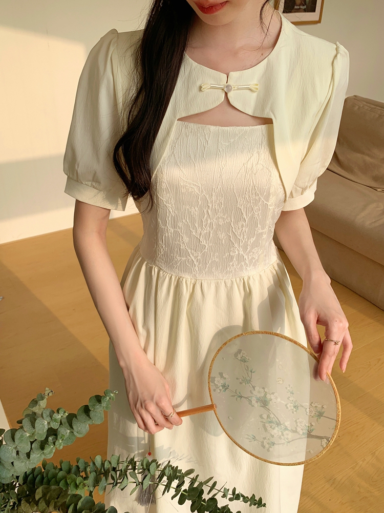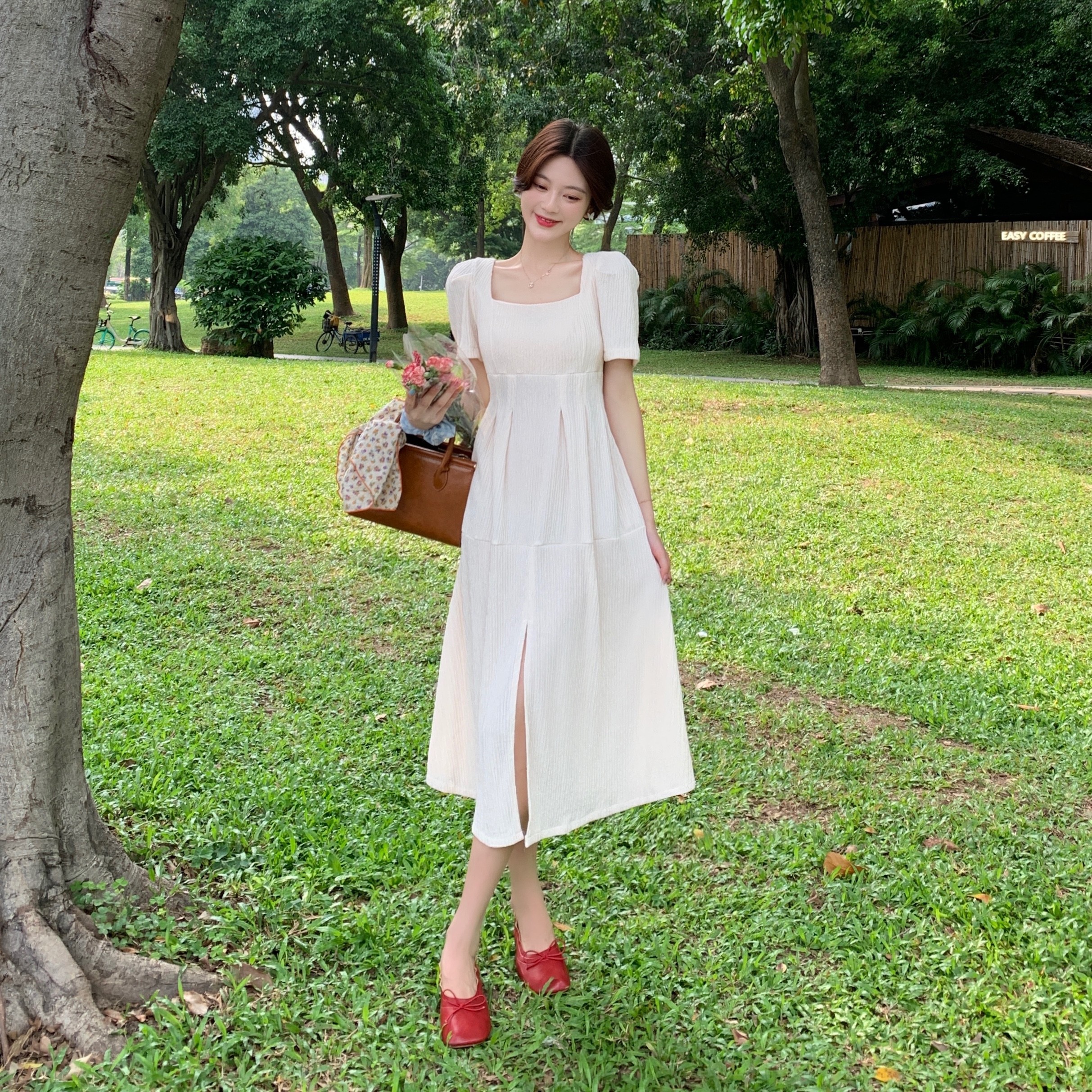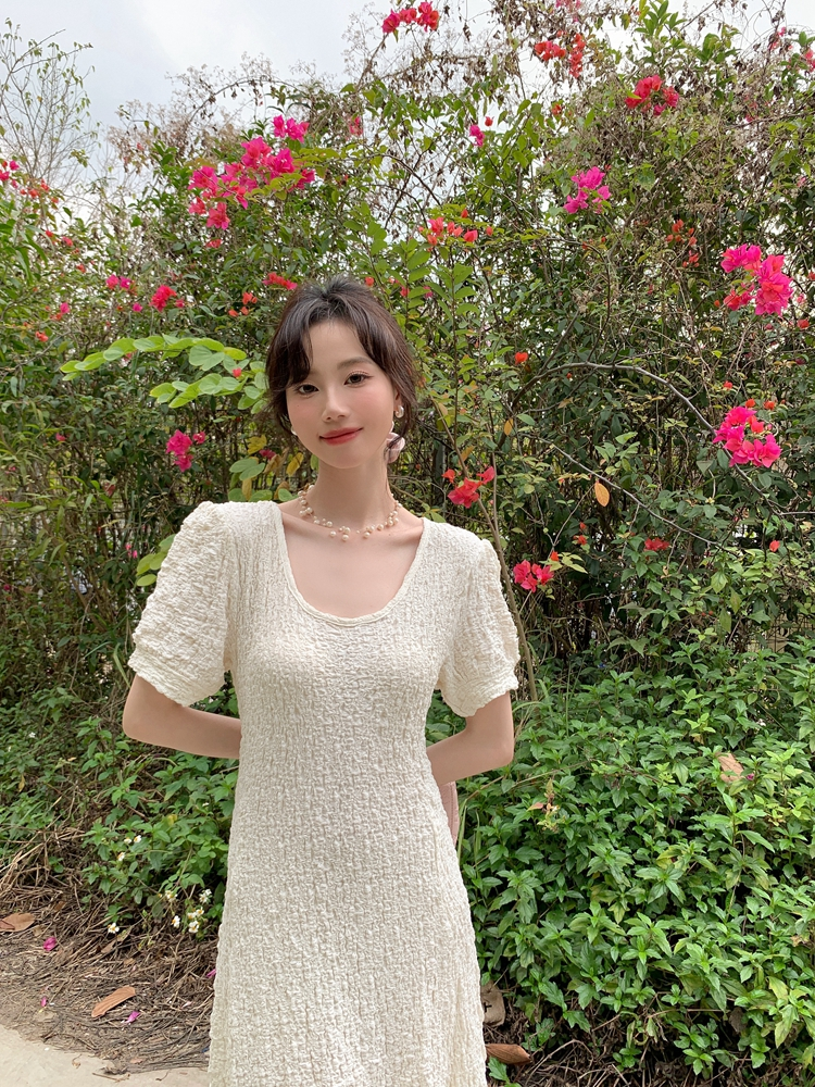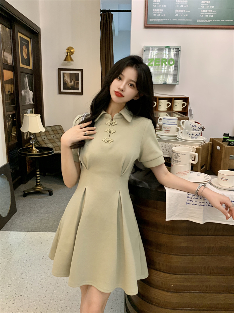 BX 뉴 원피스 여성 여름 쉬폰 플로럴 V 넥 타이트 허리 슬리밍 우아한 긴 무릎 위 A 자형 원피스스토어 가기