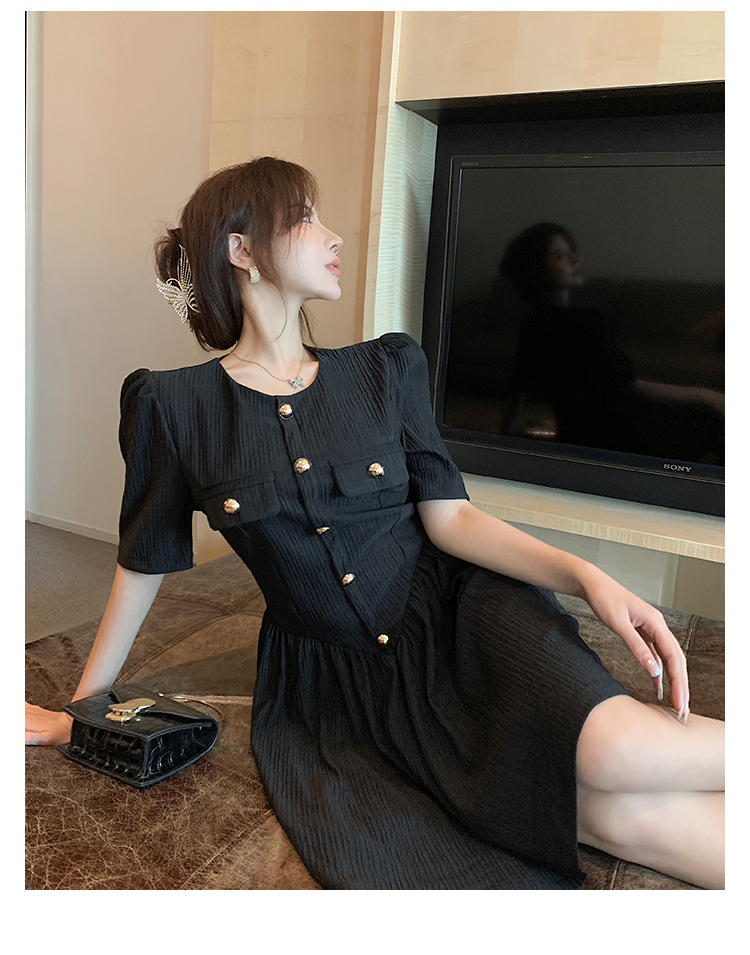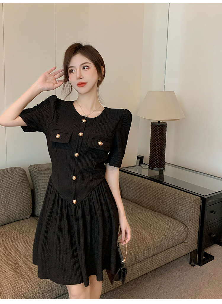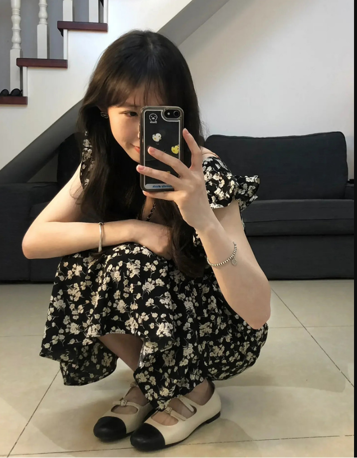 • 작은 파리 소매 꽃 무늬 다크 브라운