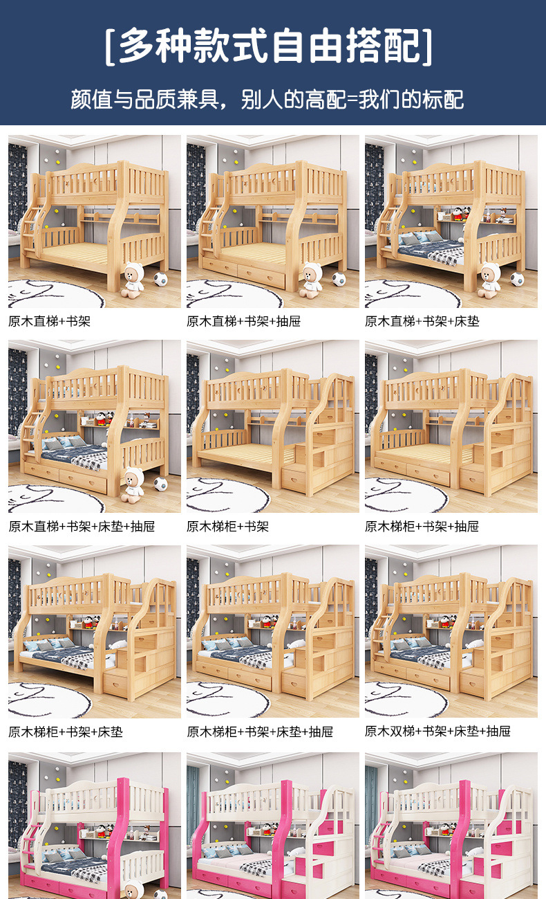 솔리드 우드 엄마와 아이 침대 이층 침대 2 층 침대 벙크 침대 침대 높고 낮은 침대 어린이 침대 성인 엄마와 아이 침대 침대