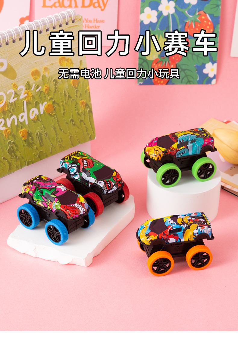 만화 주석 자동차 작은 자동차 빅풋 몬스터 스톨 백 자동차 어린이 장난감 자동차 경주 선물 유치원 작은 선물