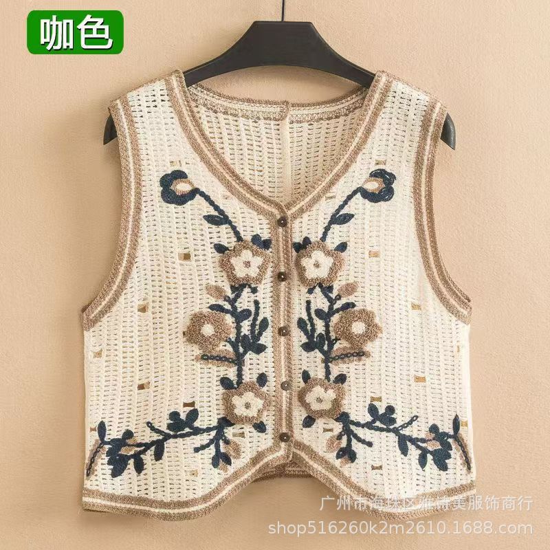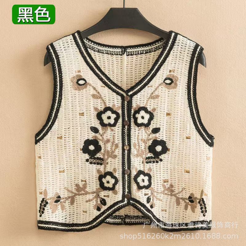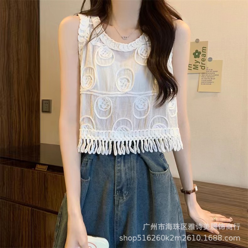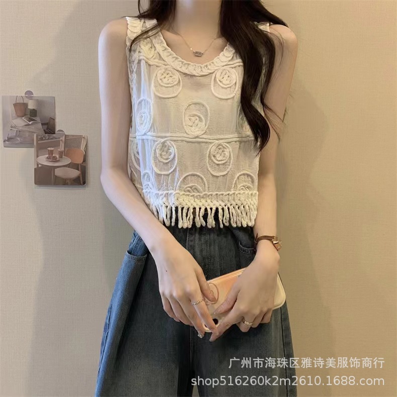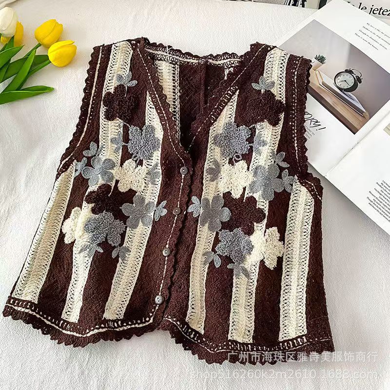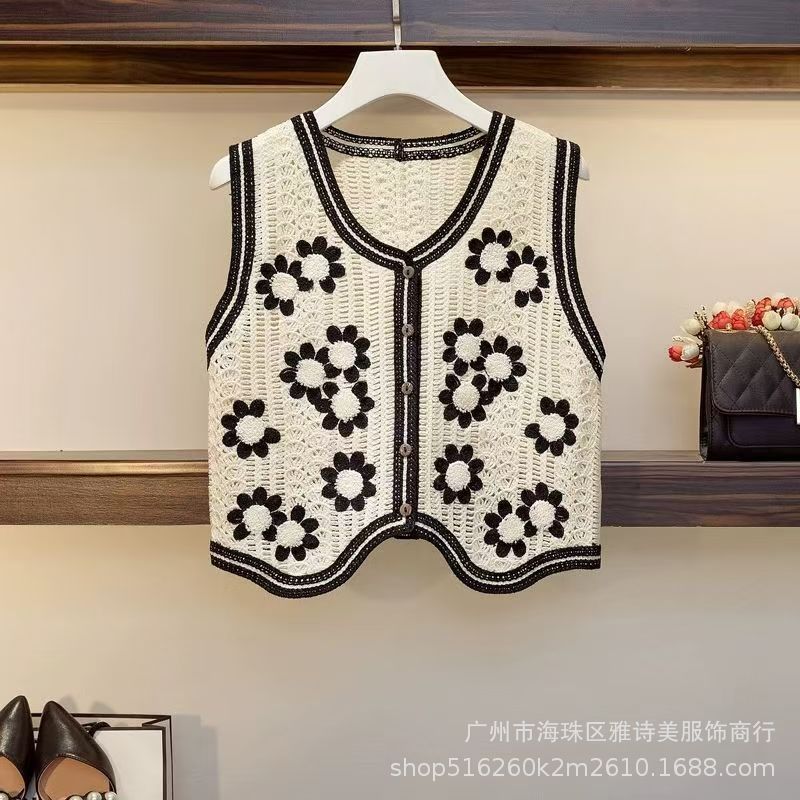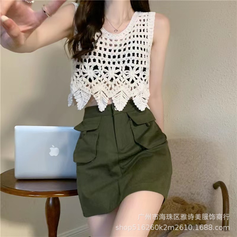 새로운 올 매치 캐주얼 할로우 크로 셰 뜨개질 레이스 V 넥 조끼 여자 여름 스위트 쇼트 탑스토어 가기
