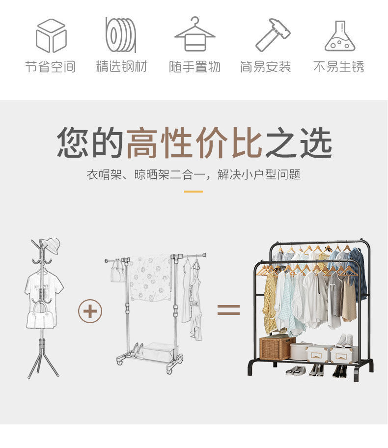 옷로드 캐비닛 내부 건조 랙 바닥 수직 가정용 침실 걸이 다기능 새 옷 걸이 랙