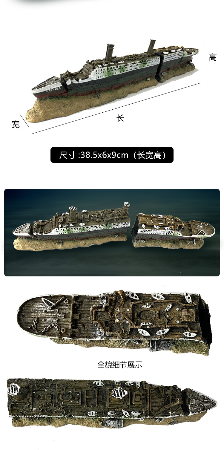 수족관 장식품 침몰선 장식 타이타닉 유해 수족관 배경 장식품 분재 아이언 다니
