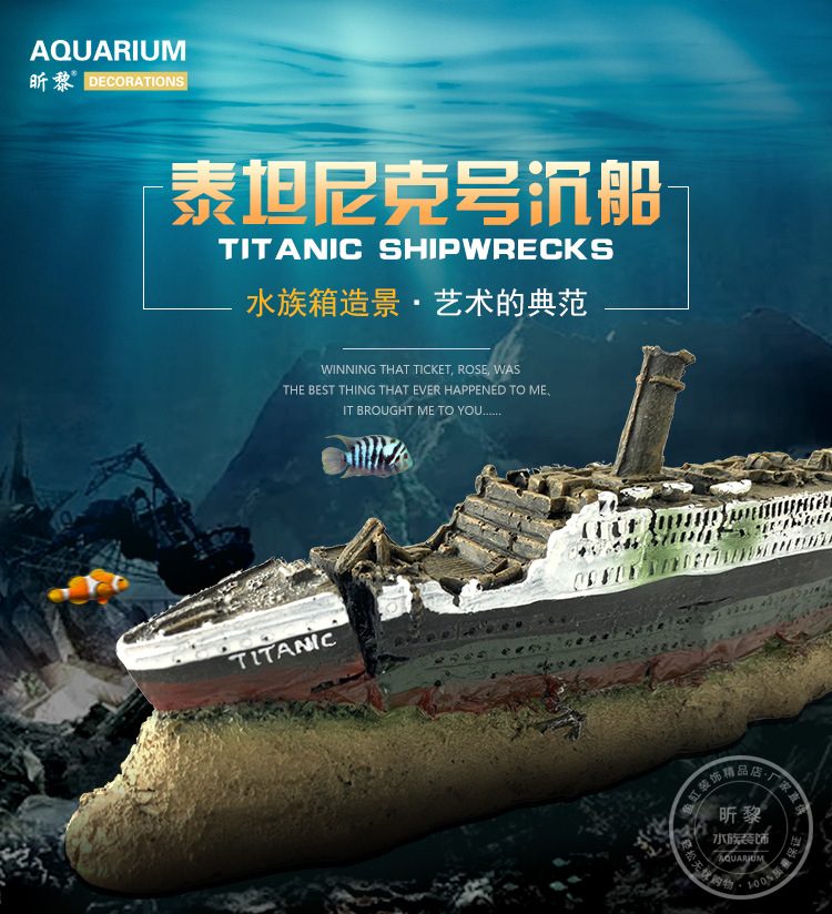 수족관 장식품 침몰선 장식 타이타닉 유해 수족관 배경 장식품 분재 아이언 다니스토어 가기