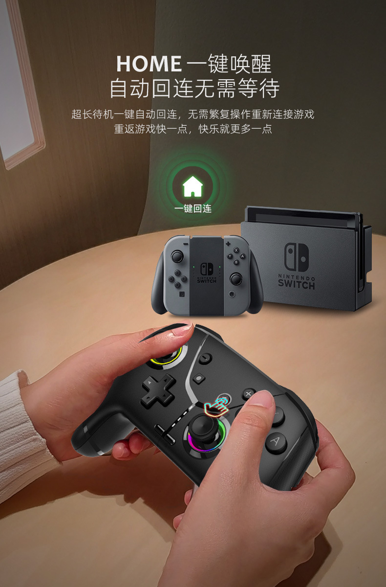 4、 支持 SWITCH PRO 手柄使用SWITCH主机一键链接和一键唤醒(NFC定制);