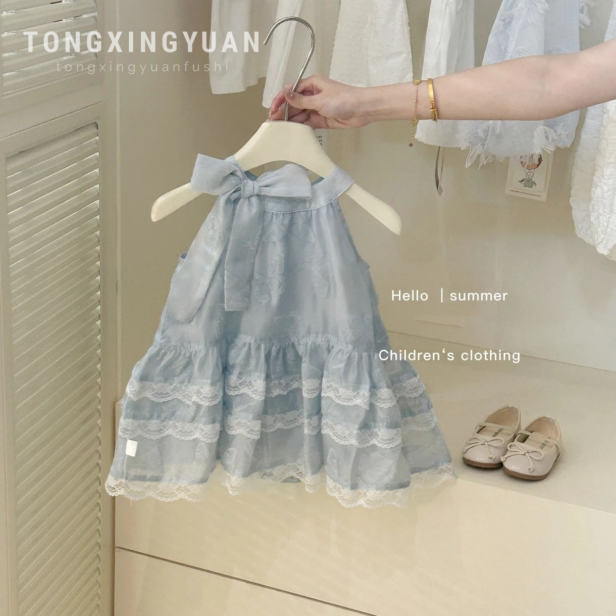 통 싱위안 달콤한 귀여운 발레 활 소녀 조끼 원피스 스타일 여름 아기 소녀 공주 원피스스토어 가기
