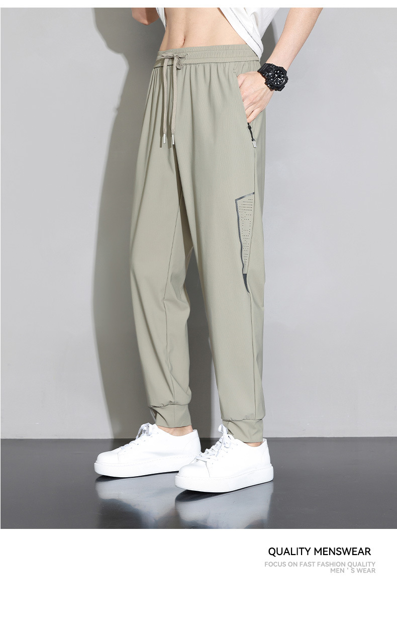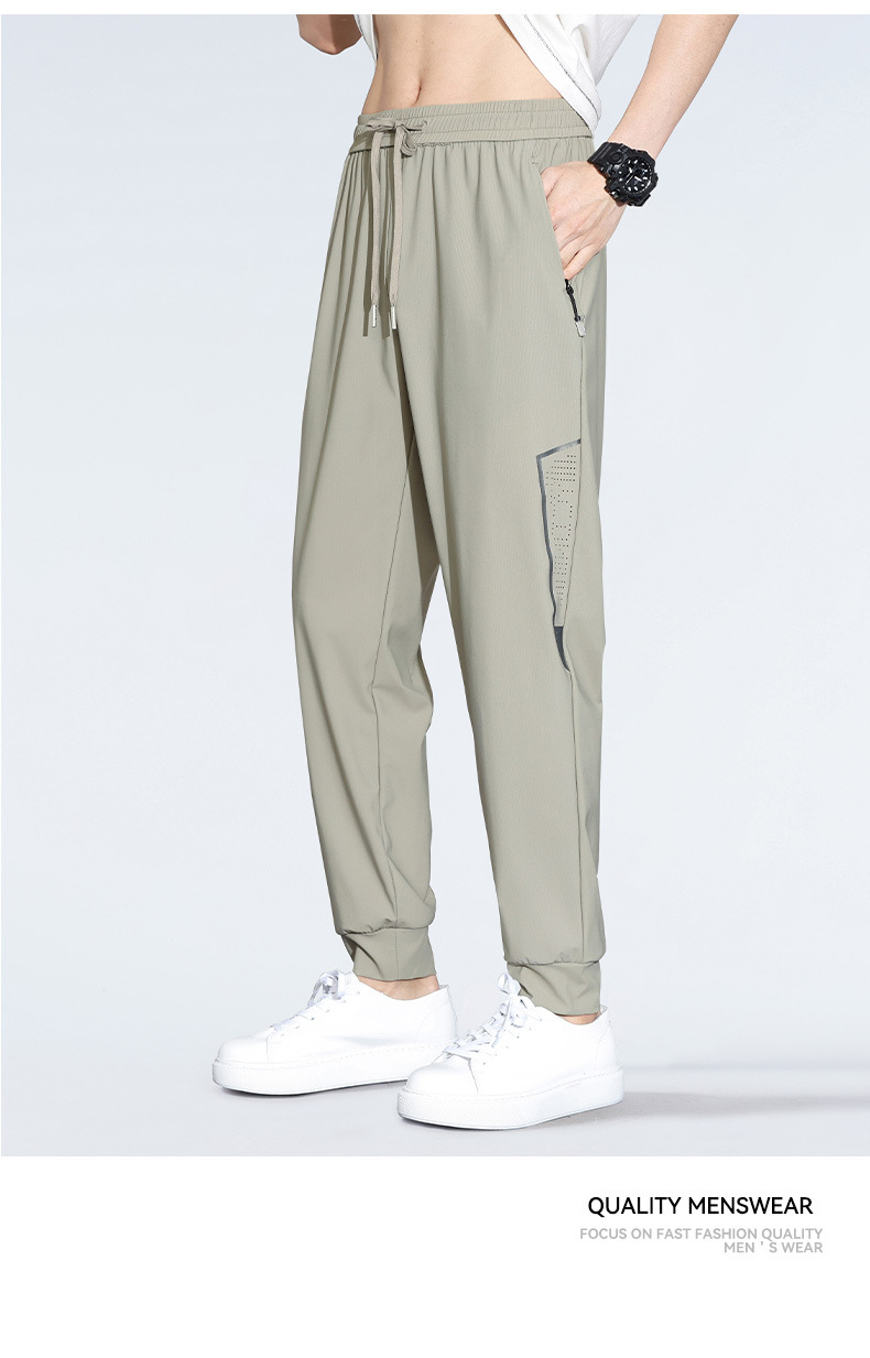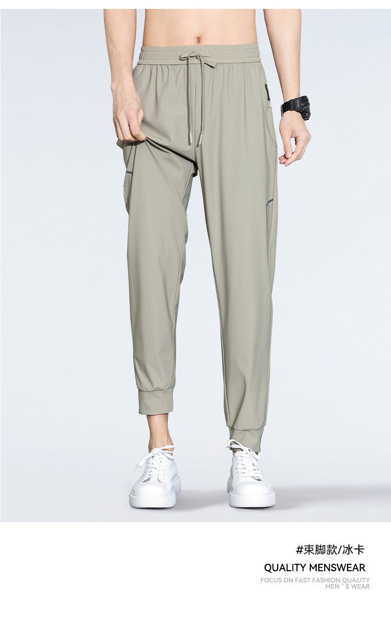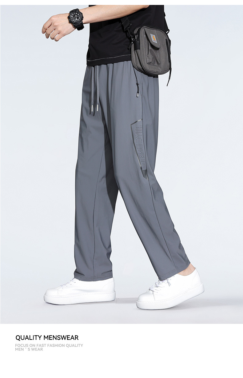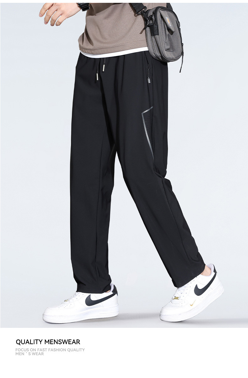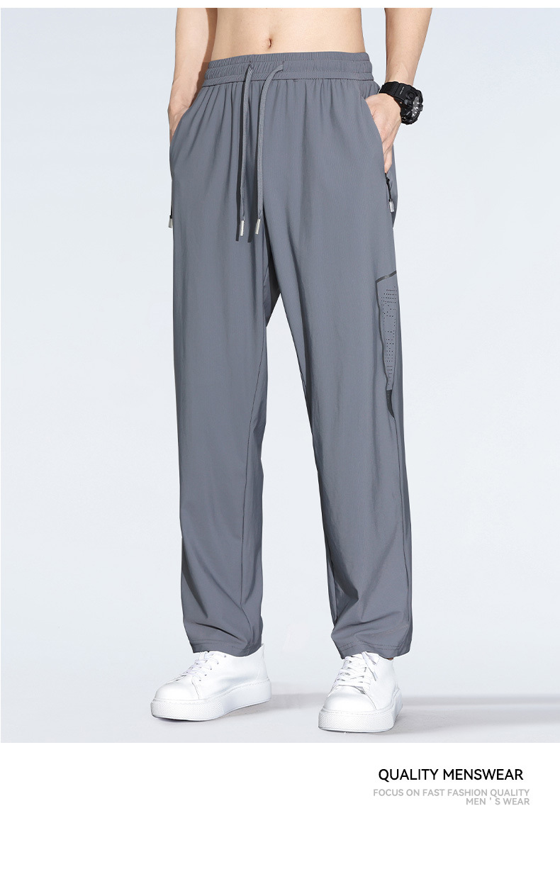 아이스 실크 캐주얼 바지 남자 여름 얇은 스트레이트 남자 바지 느슨한 높은 탄성 빠른 건조 스포츠 바지 남자 다리 길이 바지스토어 가기