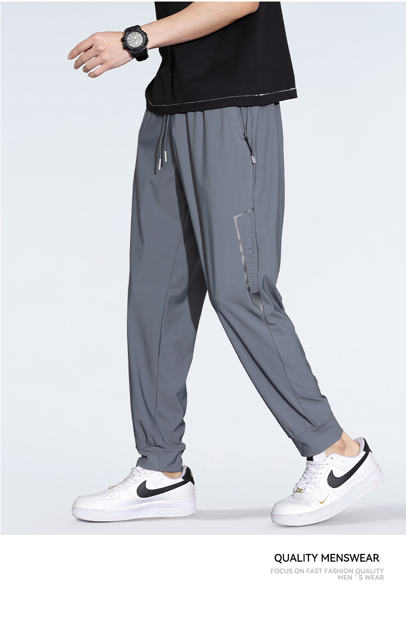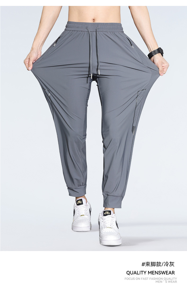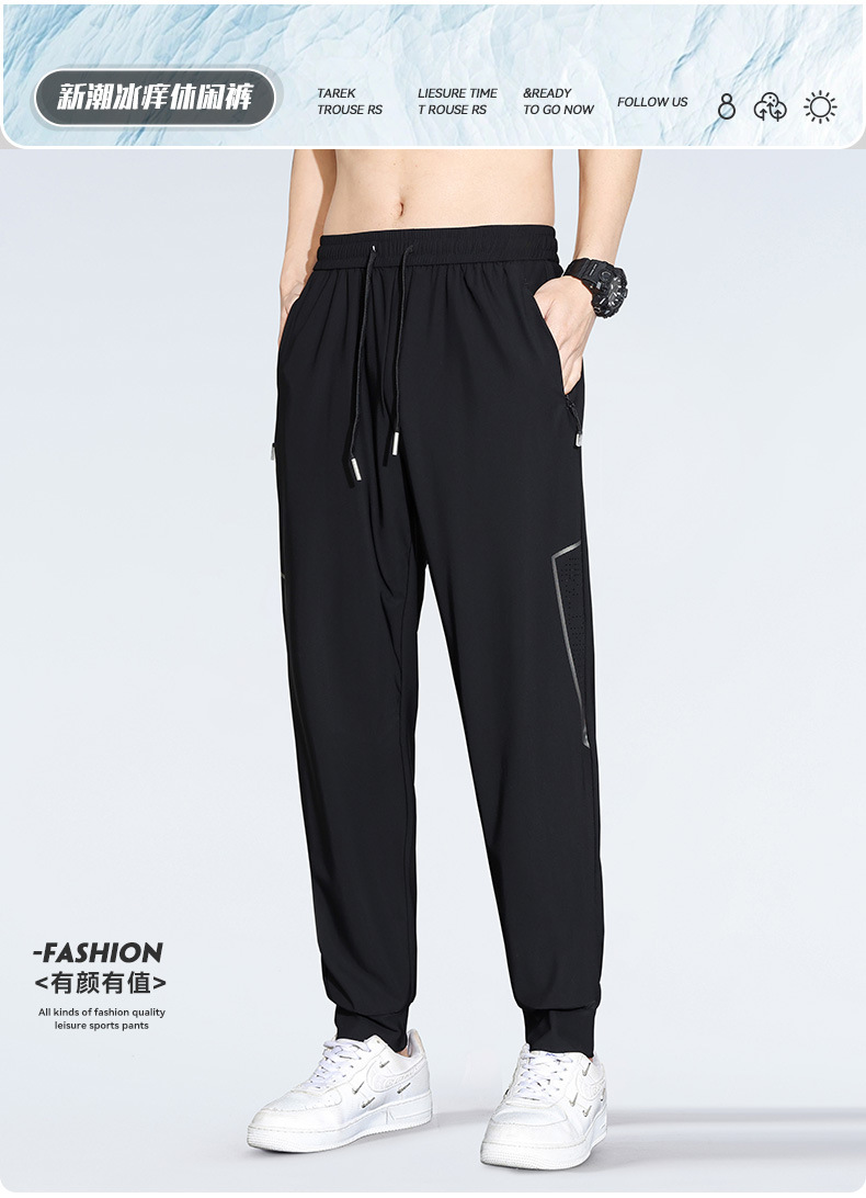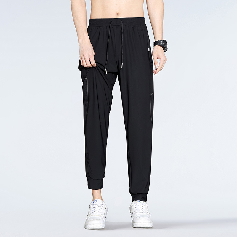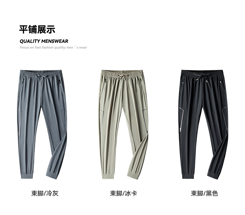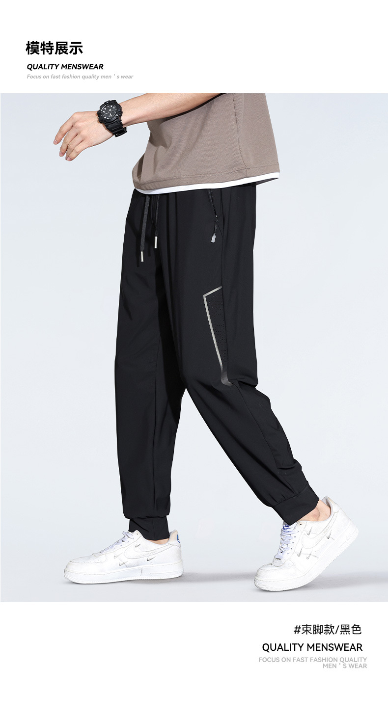 아이스 실크 캐주얼 바지 남자 여름 얇은 스트레이트 남자 바지 느슨한 높은 탄성 빠른 건조 스포츠 바지 남자 다리 길이 바지스토어 가기