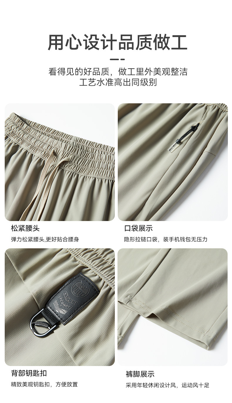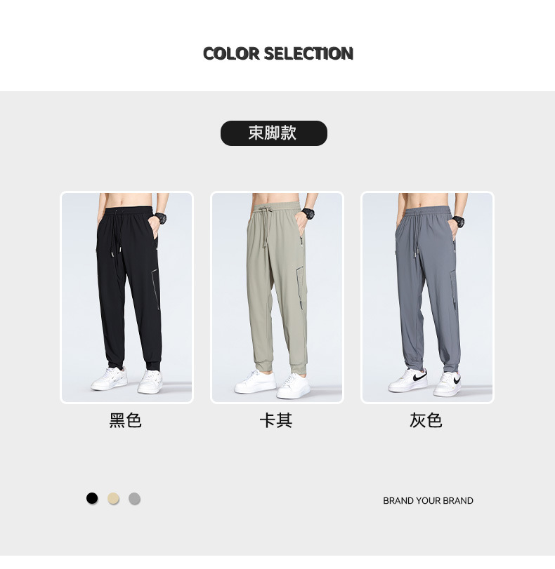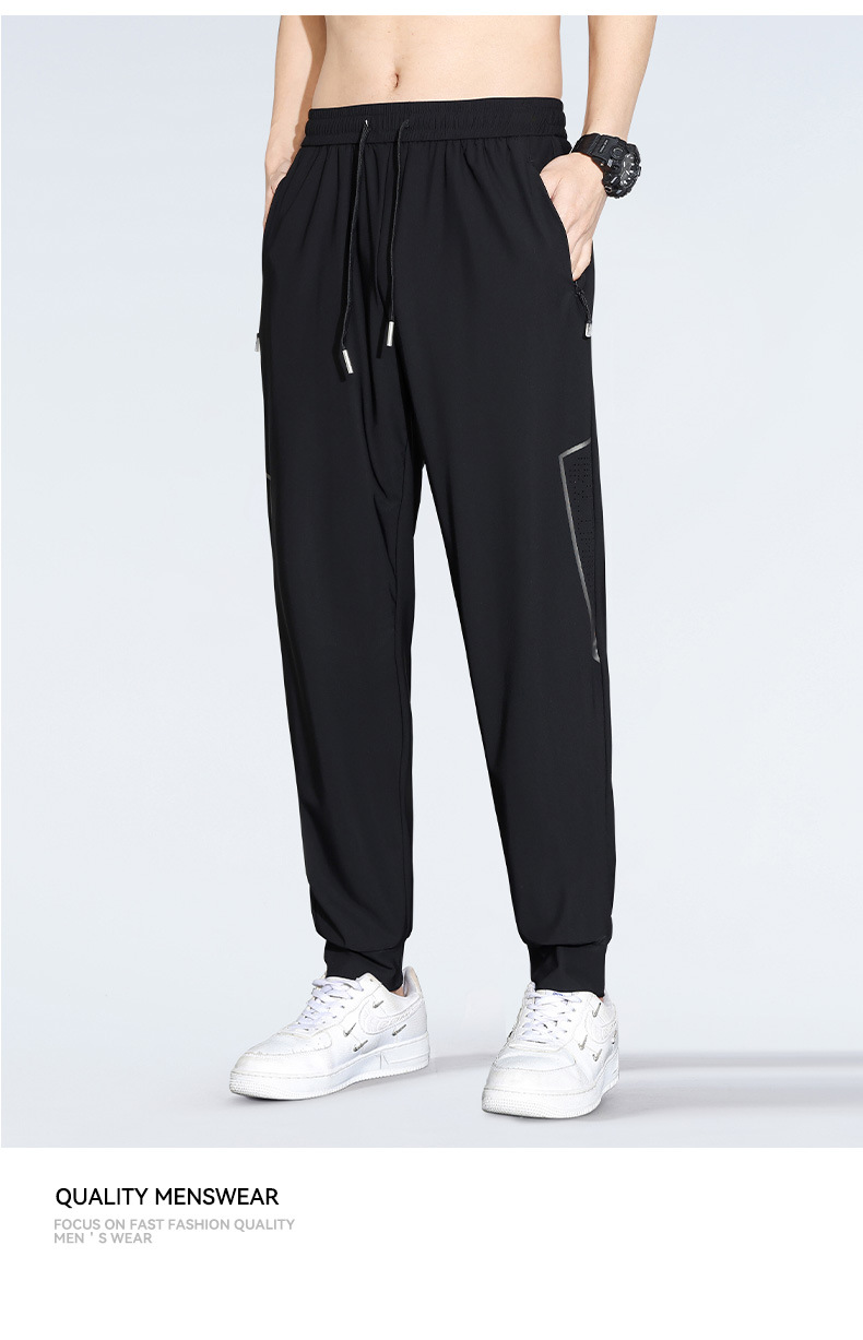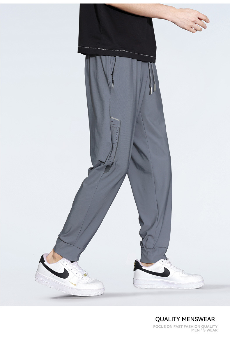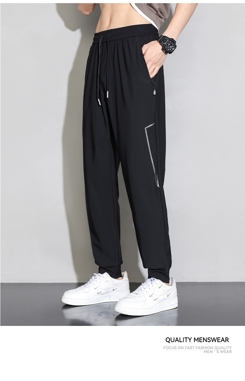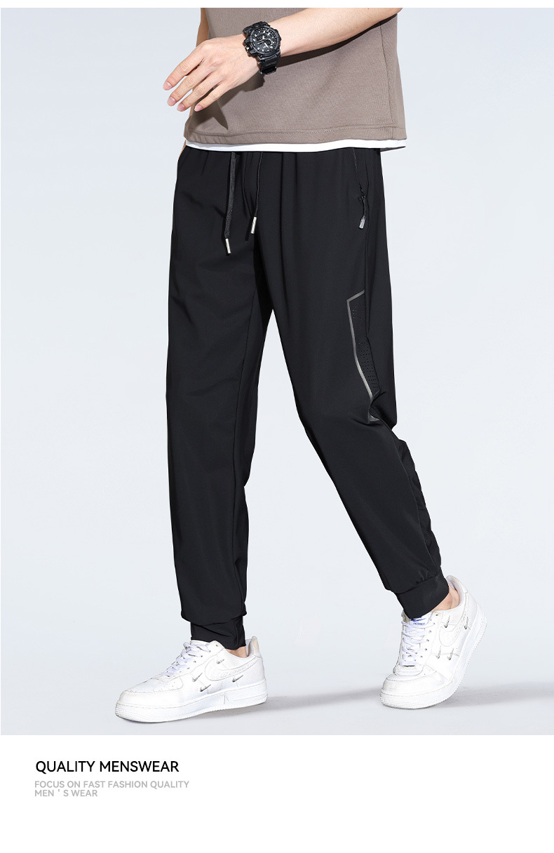 아이스 실크 캐주얼 바지 남자 여름 얇은 스트레이트 남자 바지 느슨한 높은 탄성 빠른 건조 스포츠 바지 남자 다리 길이 바지스토어 가기