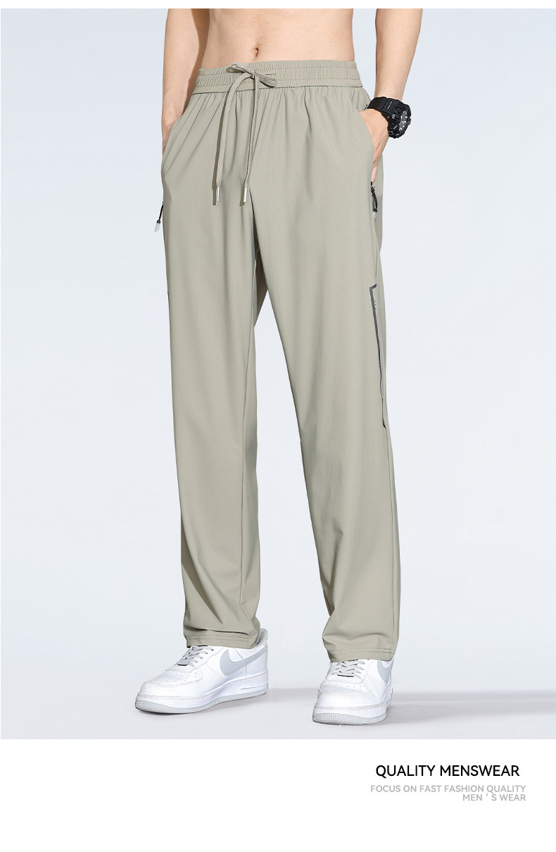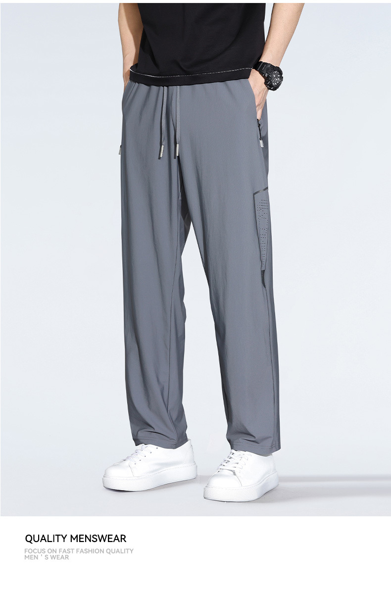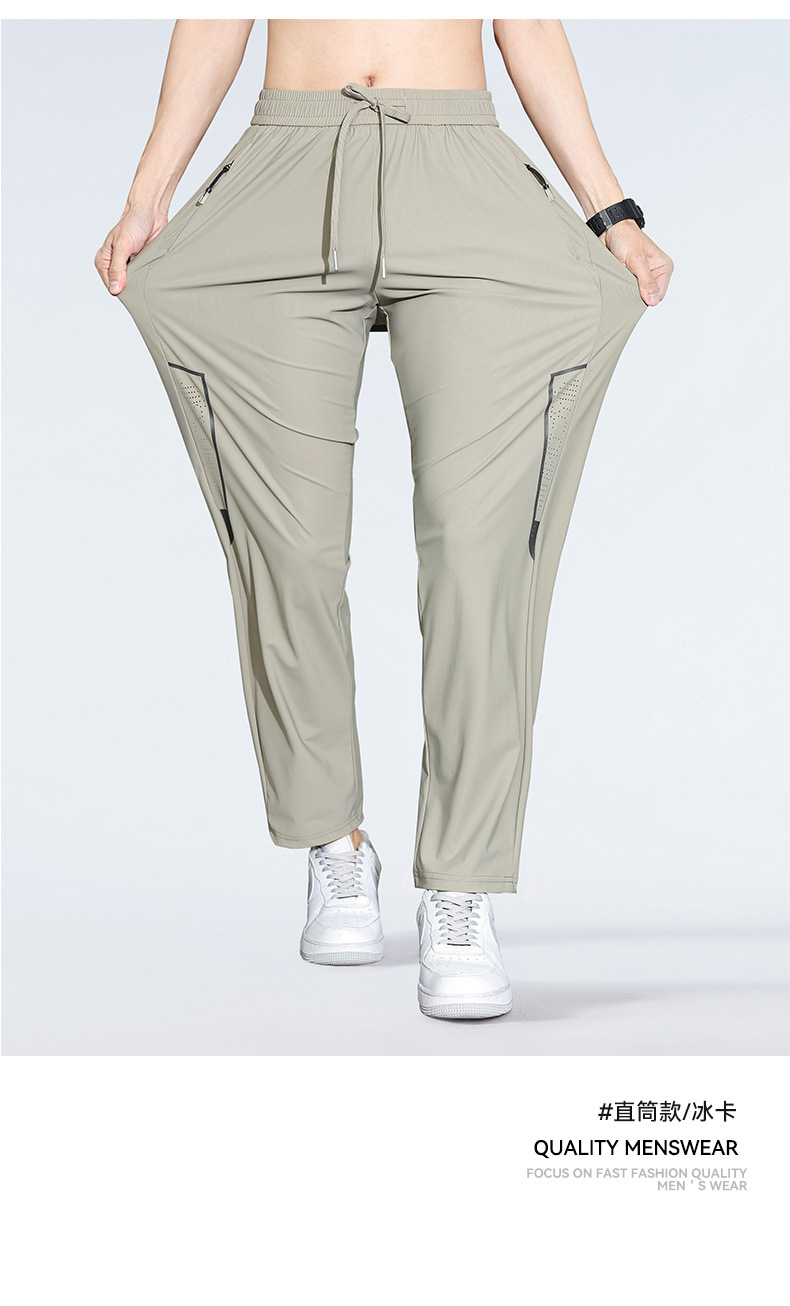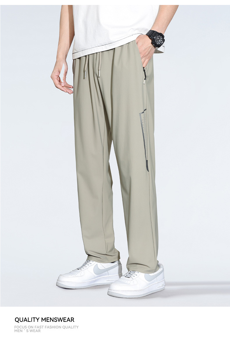 아이스 실크 캐주얼 바지 남자 여름 얇은 스트레이트 남자 바지 느슨한 높은 탄성 빠른 건조 스포츠 바지 남자 다리 길이 바지