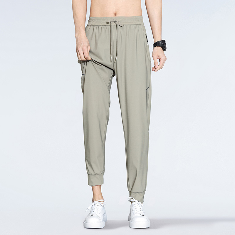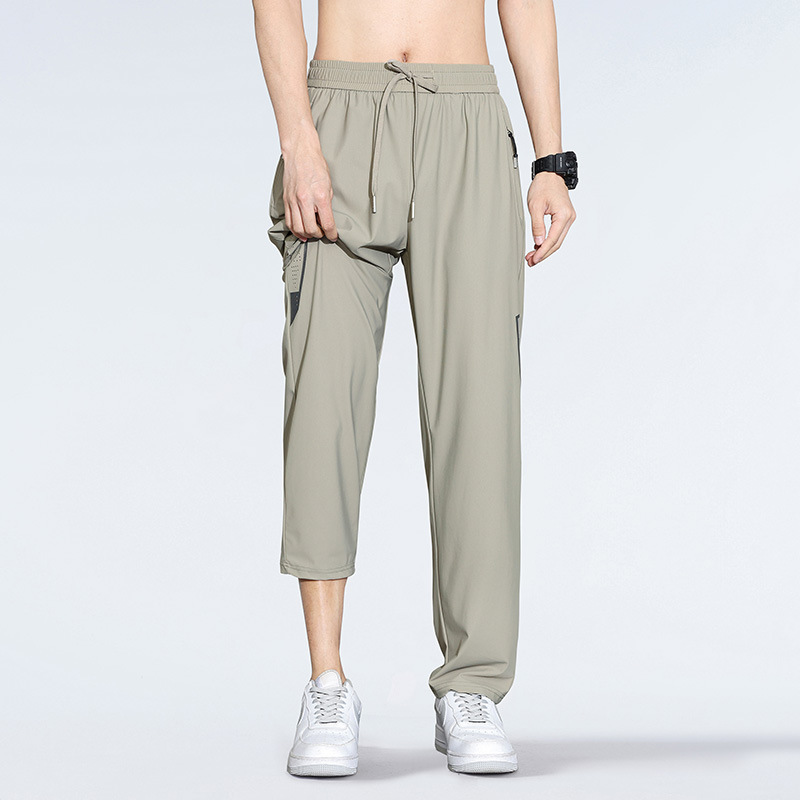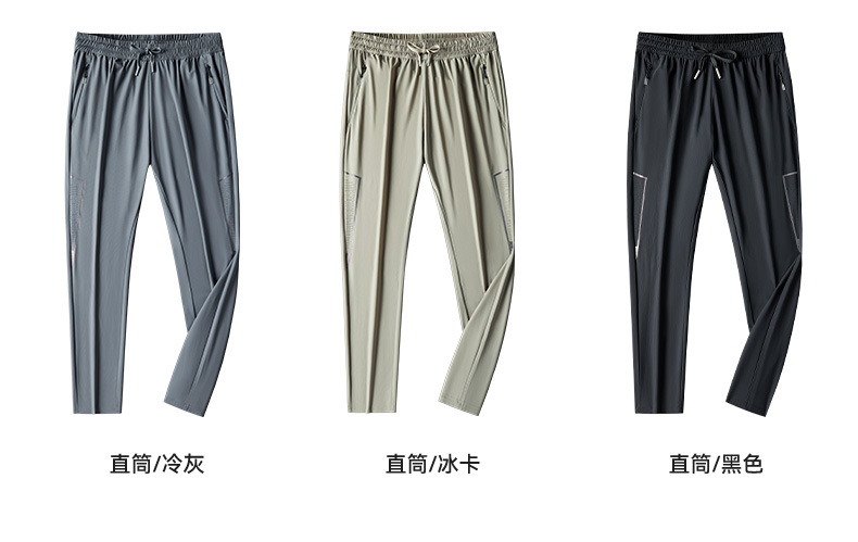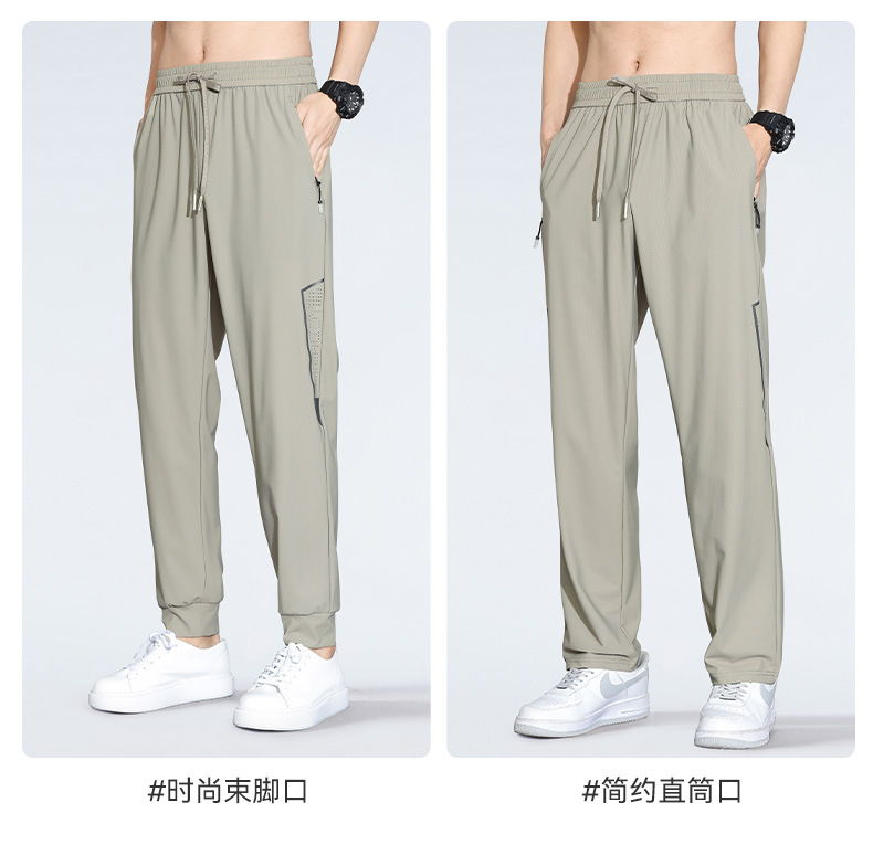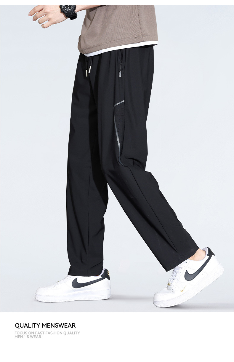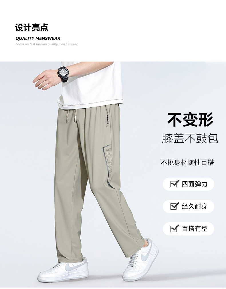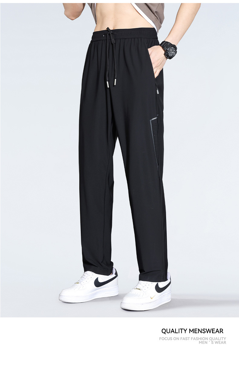 아이스 실크 캐주얼 바지 남자 여름 얇은 스트레이트 남자 바지 느슨한 높은 탄성 빠른 건조 스포츠 바지 남자 다리 길이 바지