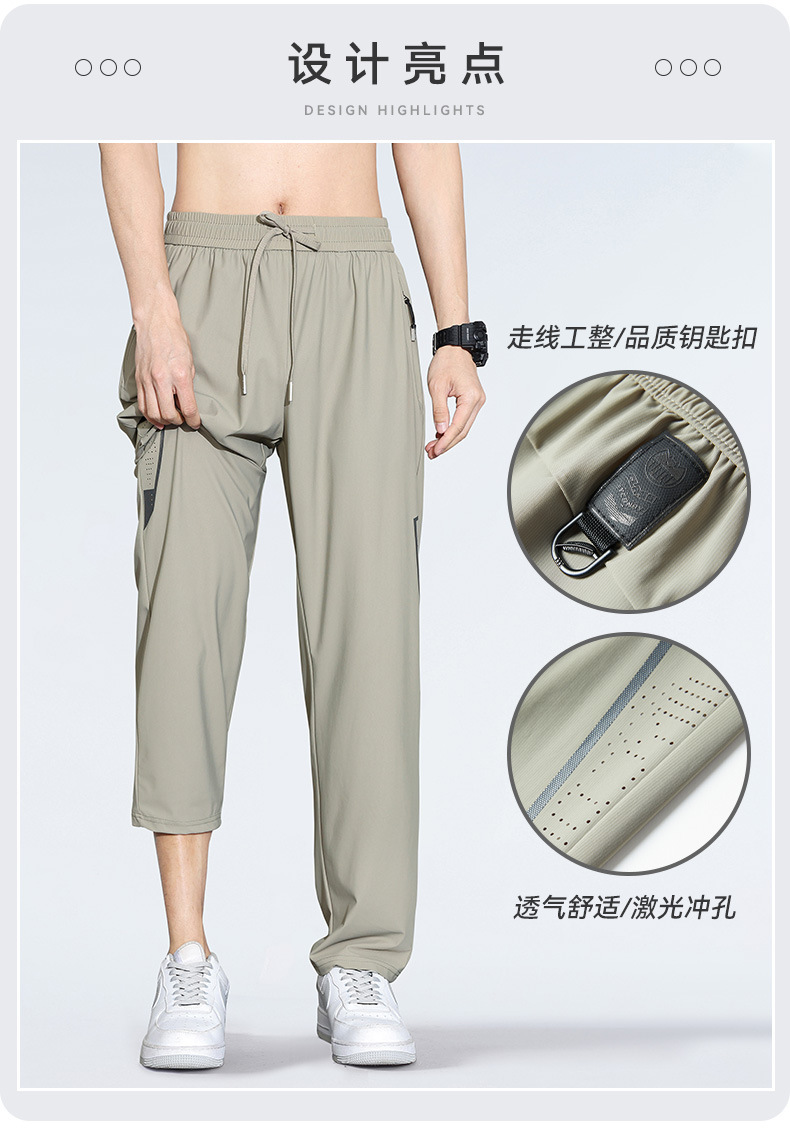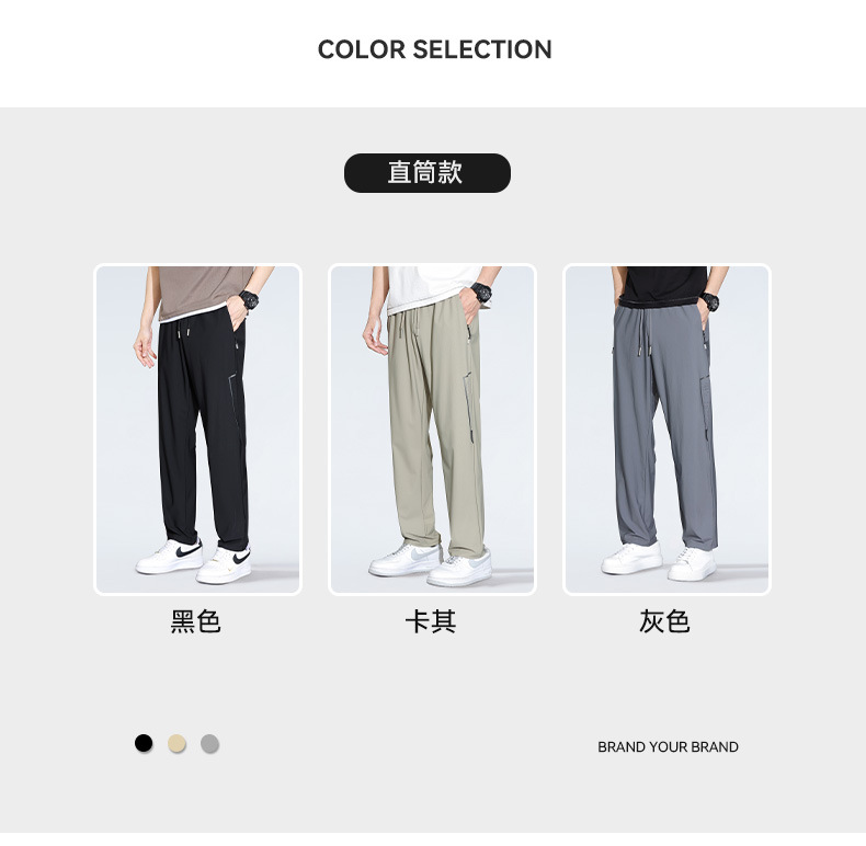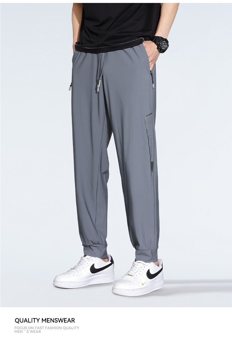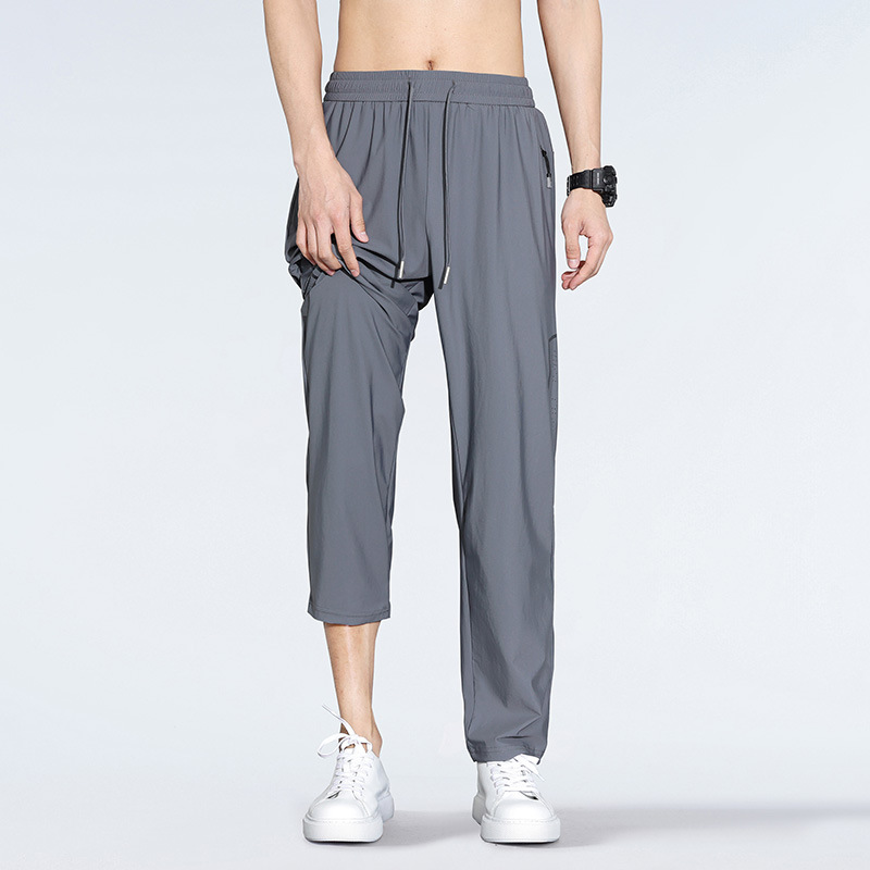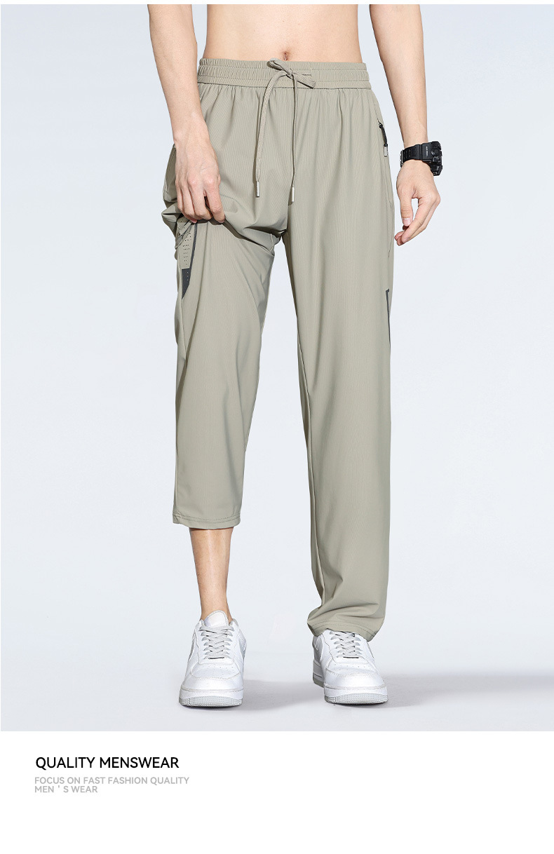 아이스 실크 캐주얼 바지 남자 여름 얇은 스트레이트 남자 바지 느슨한 높은 탄성 빠른 건조 스포츠 바지 남자 다리 길이 바지