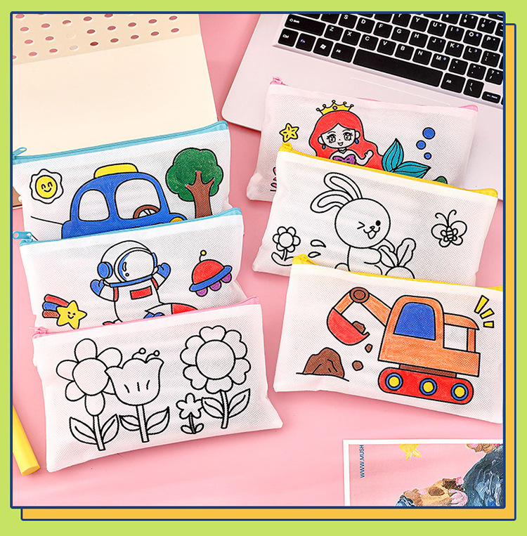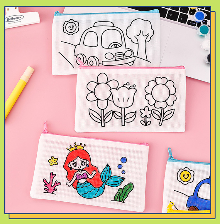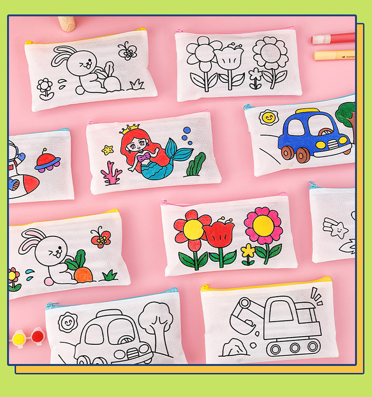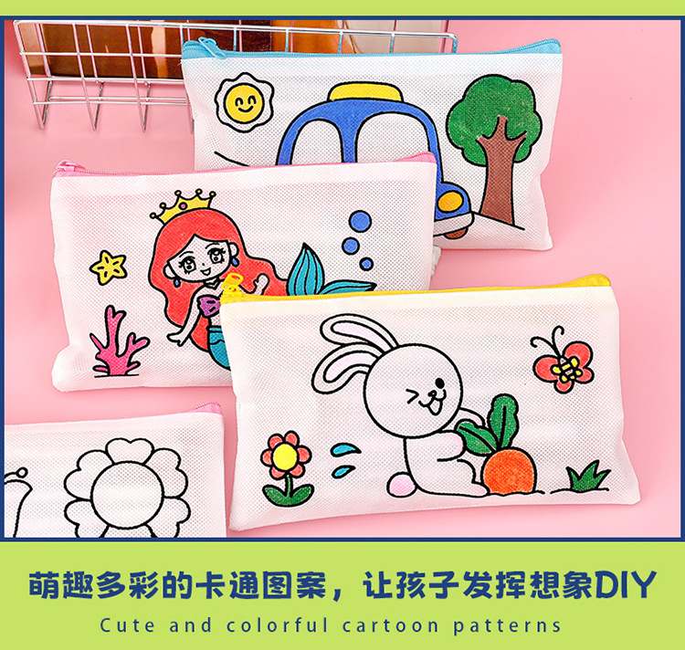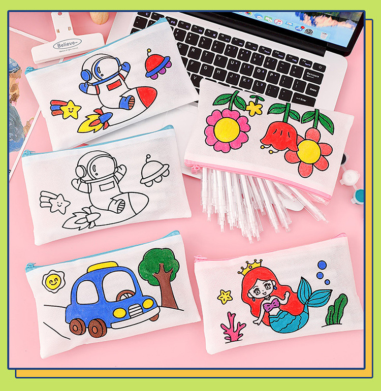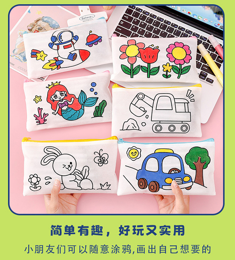 야외 활동을위한 어린이 DIY 낙서 연필 가방 학생을위한 수제 작은 선물 창조적 인 그림 색칠 연필 가방