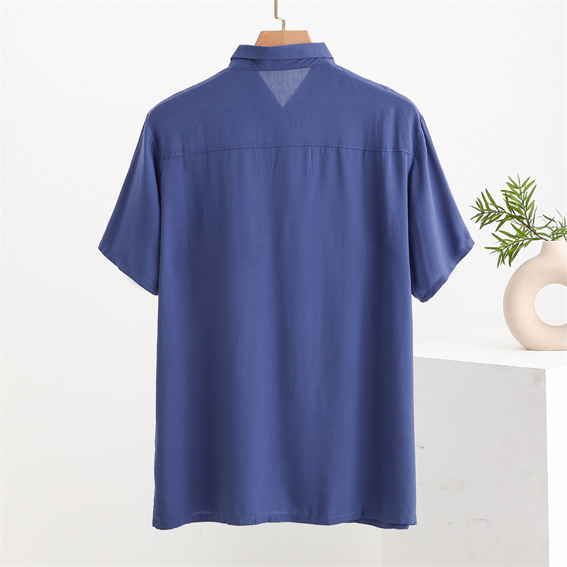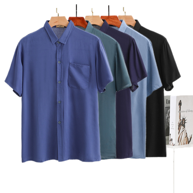 코튼 실크 반팔 옷깃 셔츠 카디건 중년 및 노인 남성용 얇은 인공 면화 플러스 사이즈 포켓 탑 남성용 셔츠스토어 가기