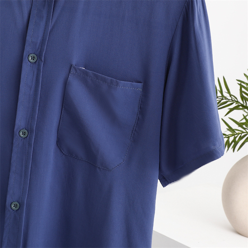 코튼 실크 반팔 옷깃 셔츠 카디건 중년 및 노인 남성용 얇은 인공 면화 플러스 사이즈 포켓 탑 남성용 셔츠