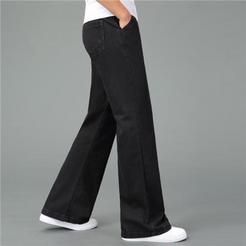 데님 뿔 바지 남자의 봄과 여름 새로운 도착 남자의 큰 뿔 넓은 바지 발 입 넓은 다리 큰 다리 두꺼운 느슨한 긴 무료 배송스토어 가기