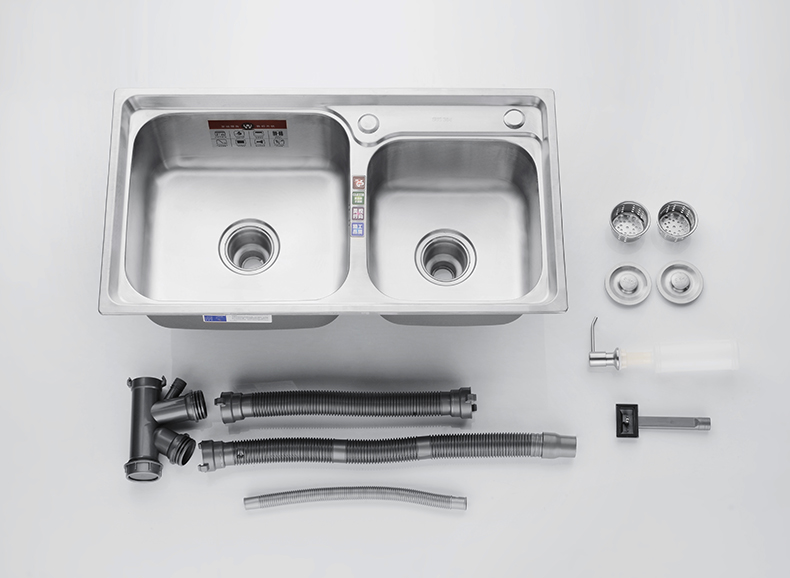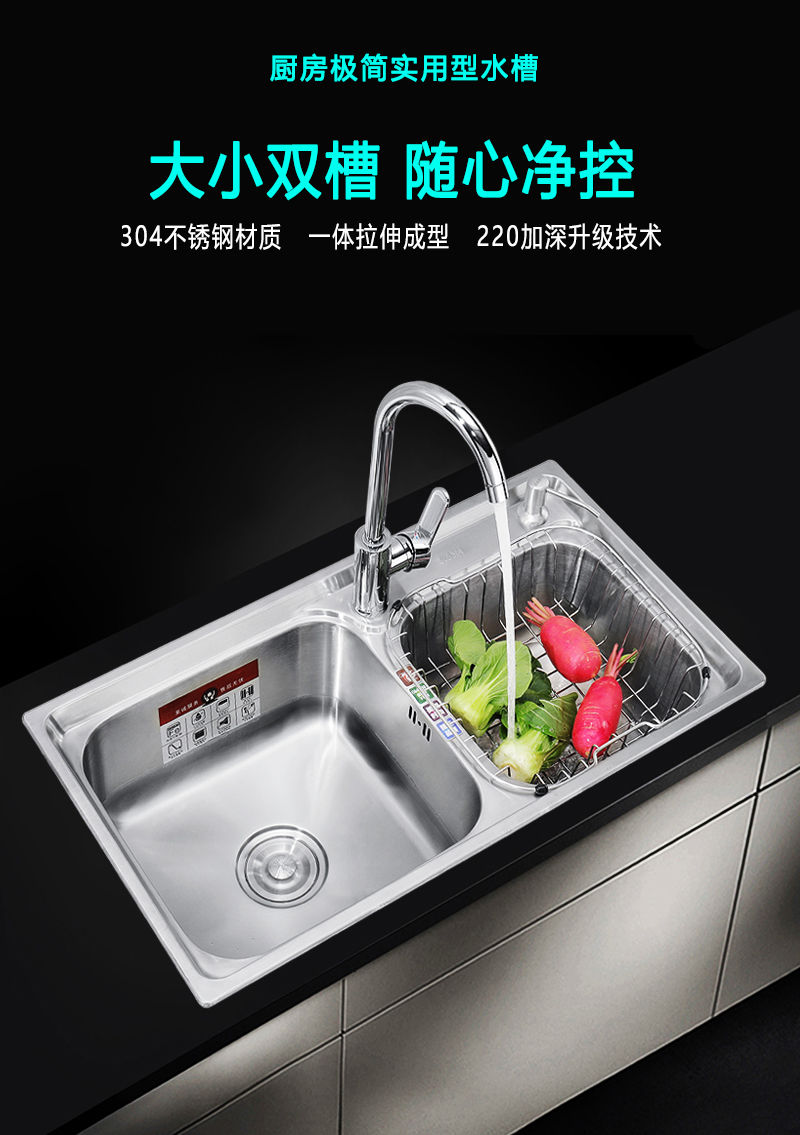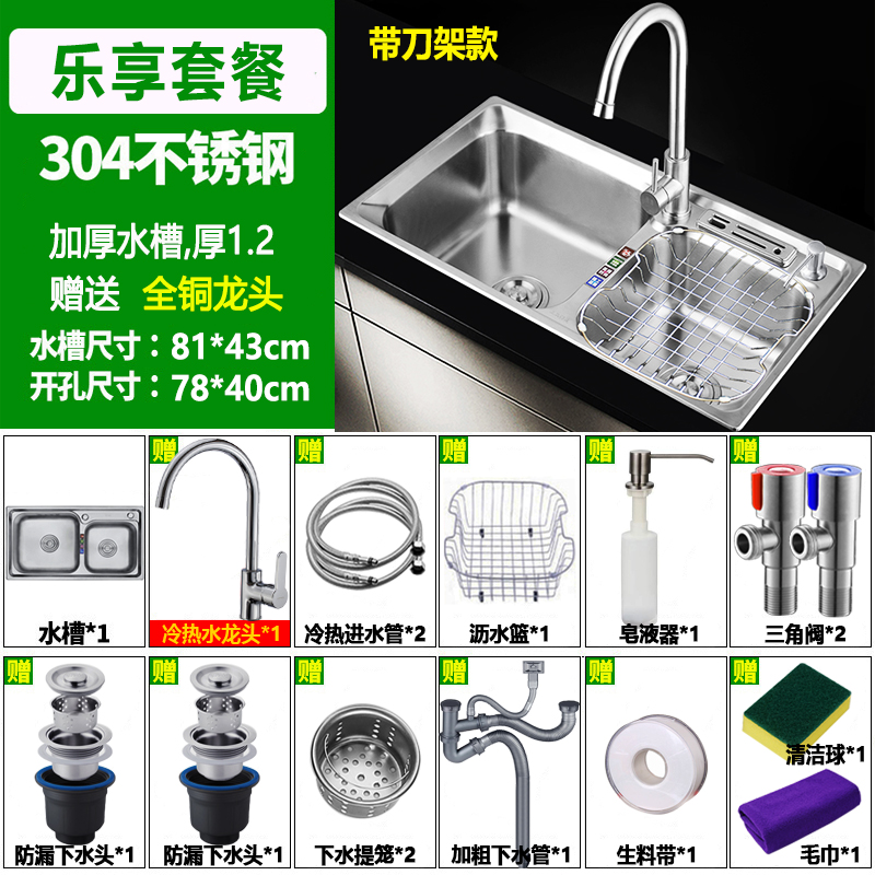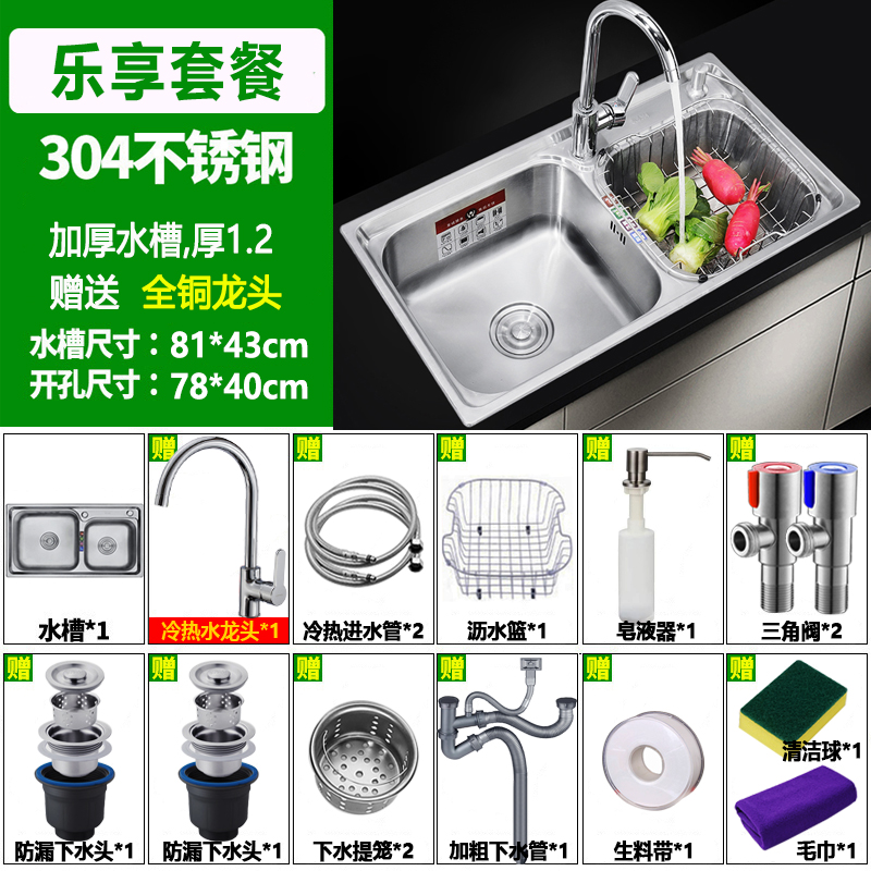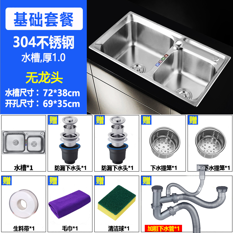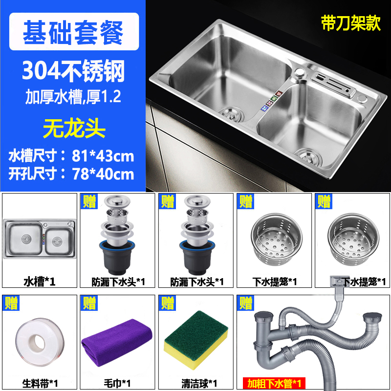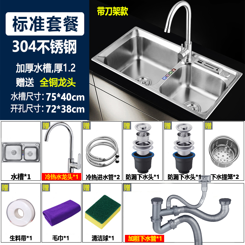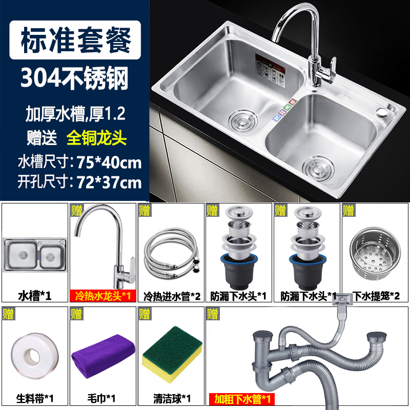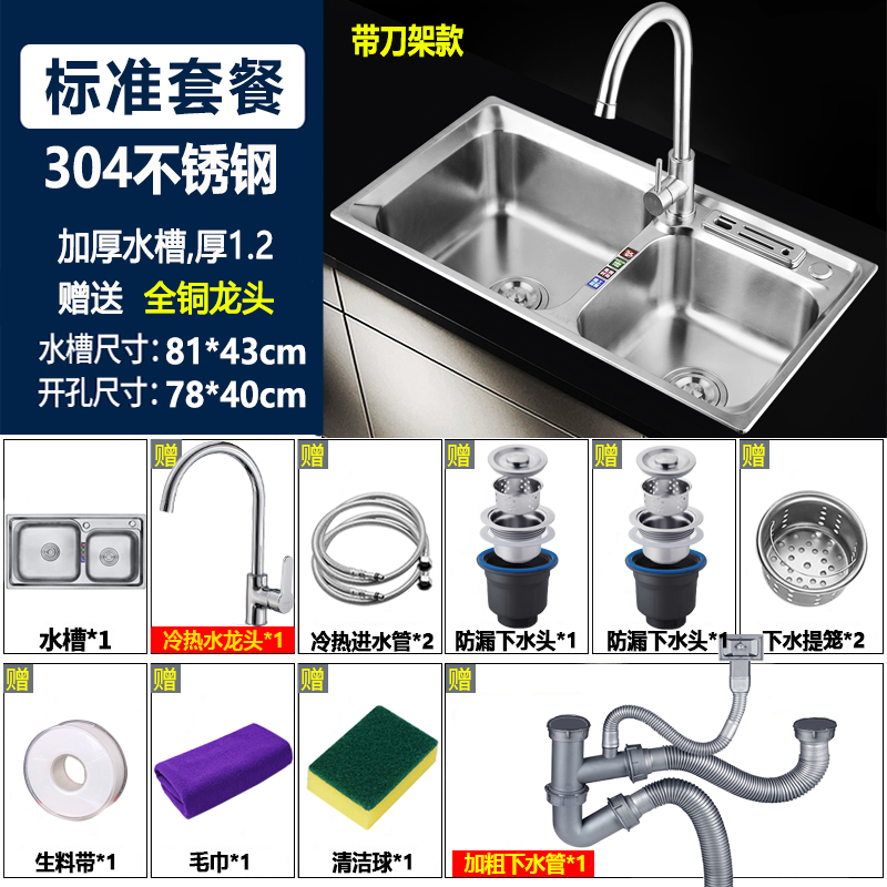 두꺼운 304 스테인레스 스틸 싱크 더블 싱크 패키지 도구 보유 주방 야채 세척 분지 그릇 풀 더블 분지 무료 배송스토어 가기
