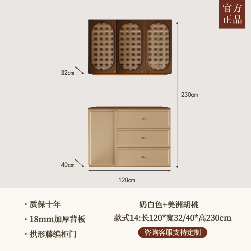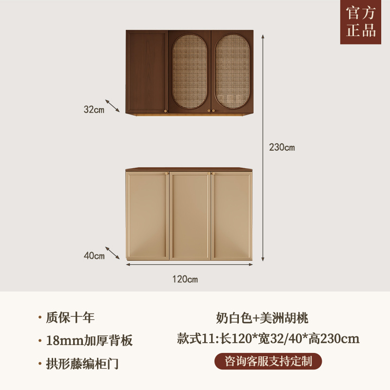 • [크림 화이트 아메리칸 호두 색상] 스타일 15: 길이 120 * 폭 32/40 * 높이 230cm