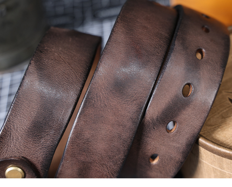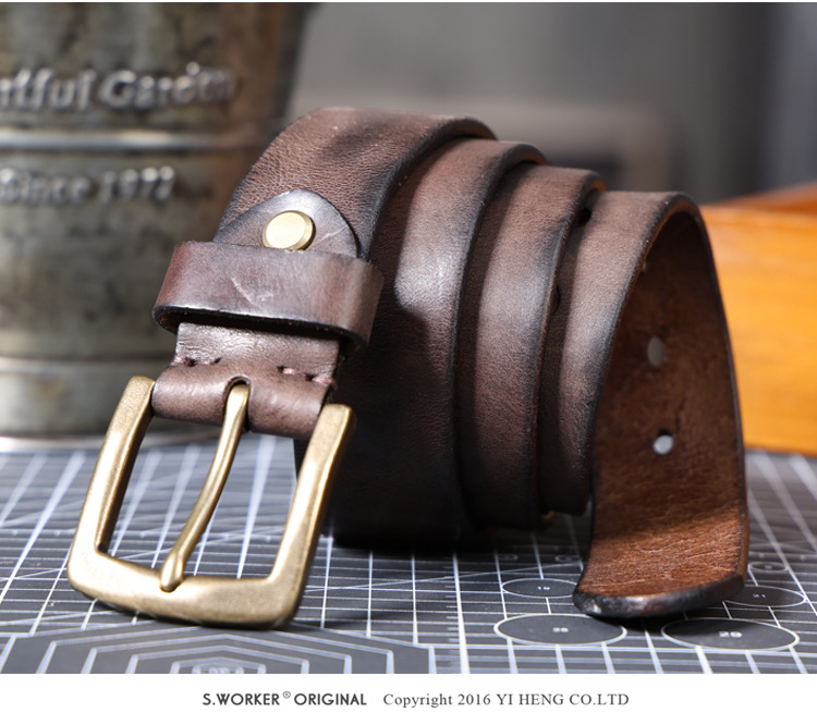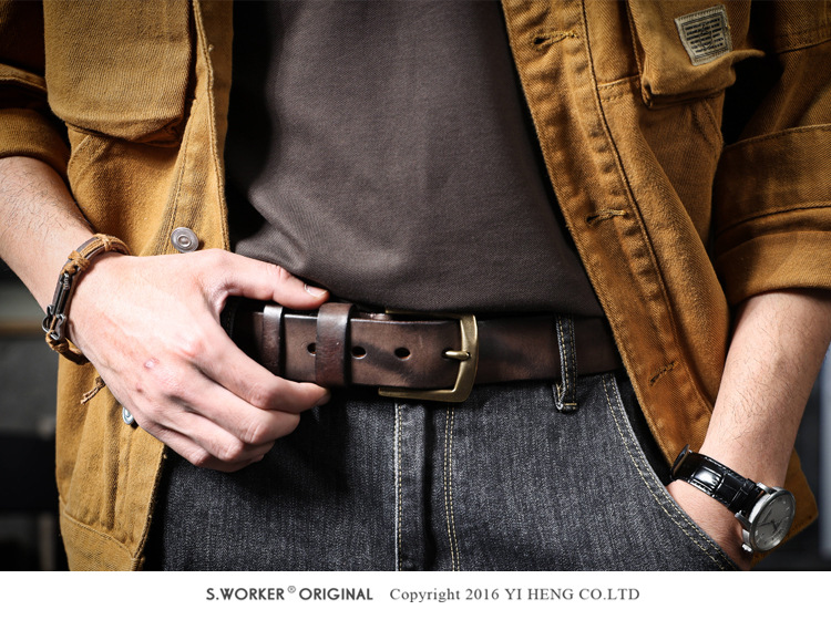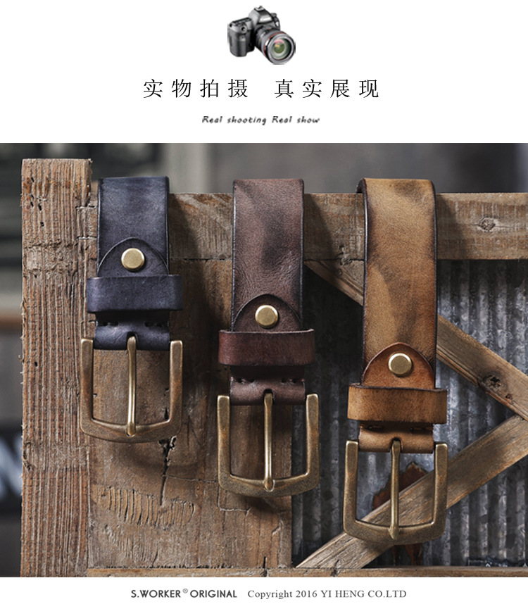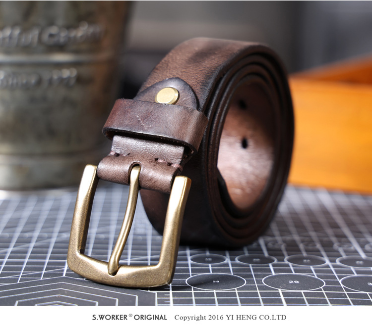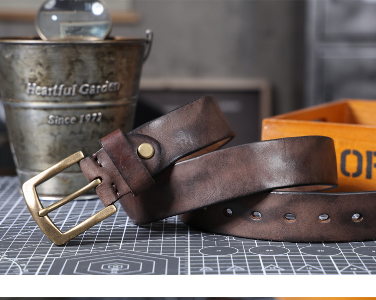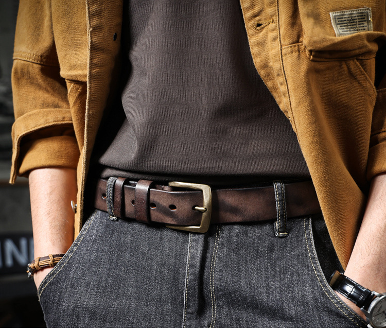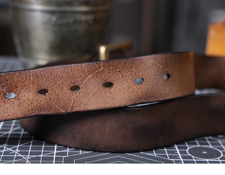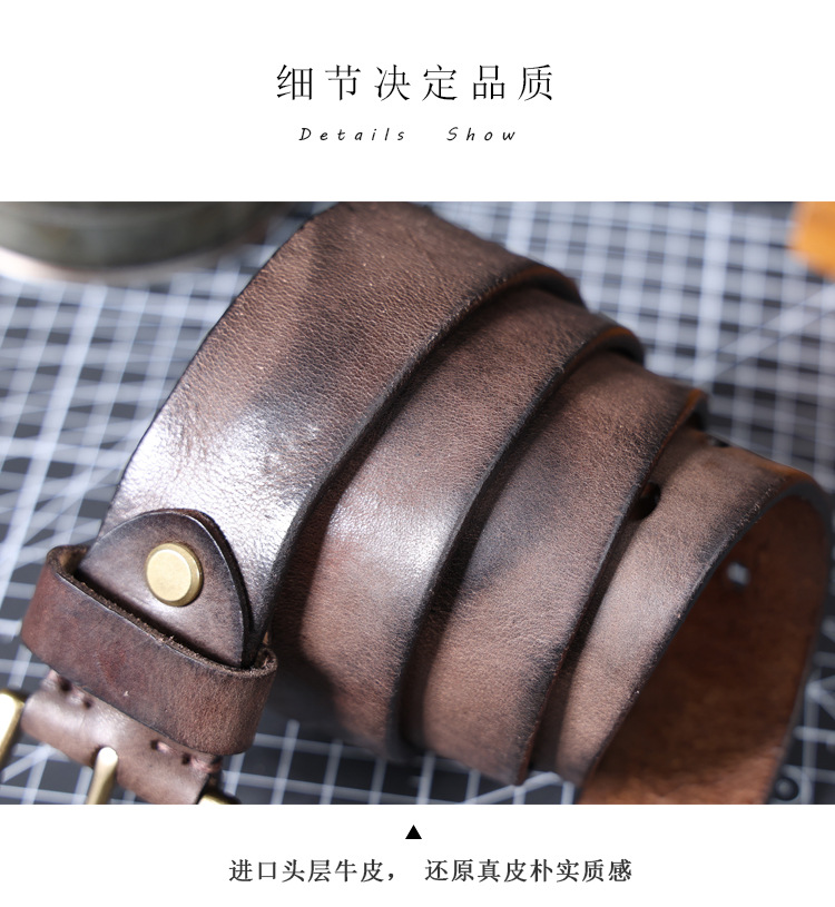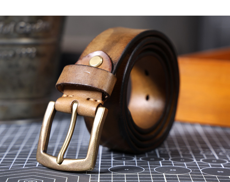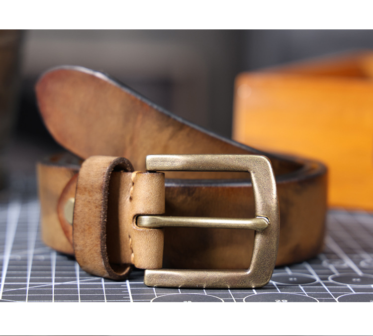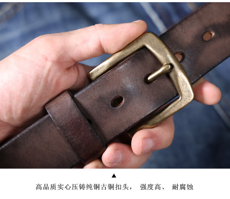 빈티지 캐주얼 탑 레이어 카우보이 남성 벨트 순수 구리 버클 벨트 클립 수제 가죽 벨트 간단한 올 매치 트렌디스토어 가기