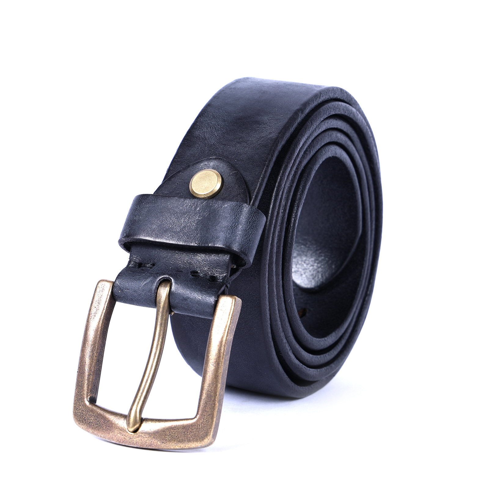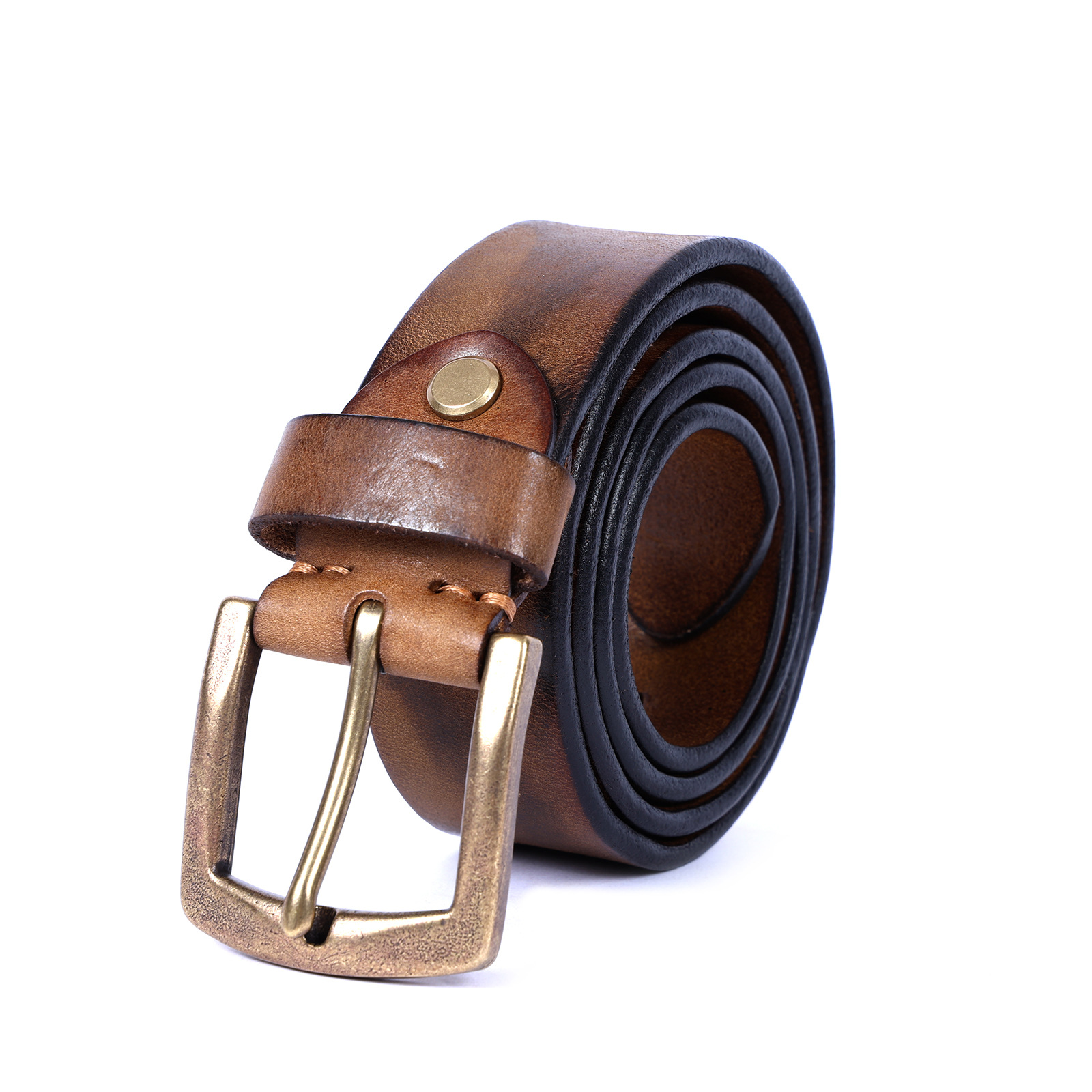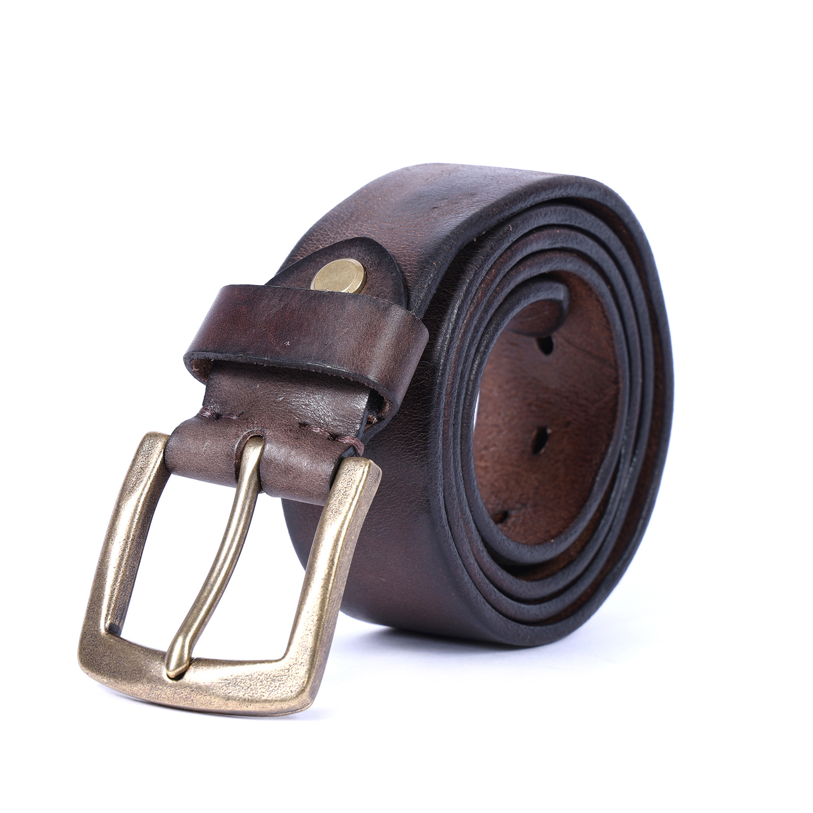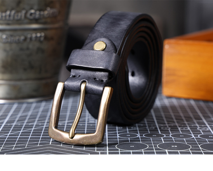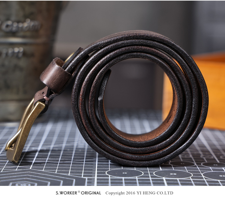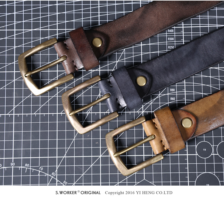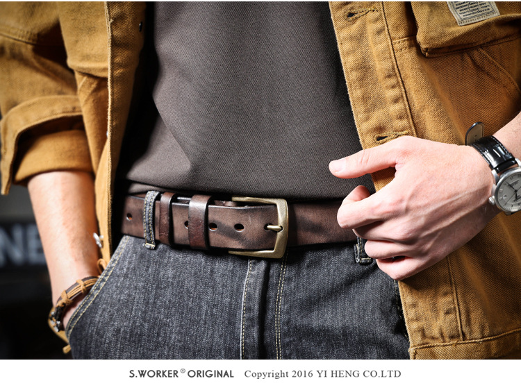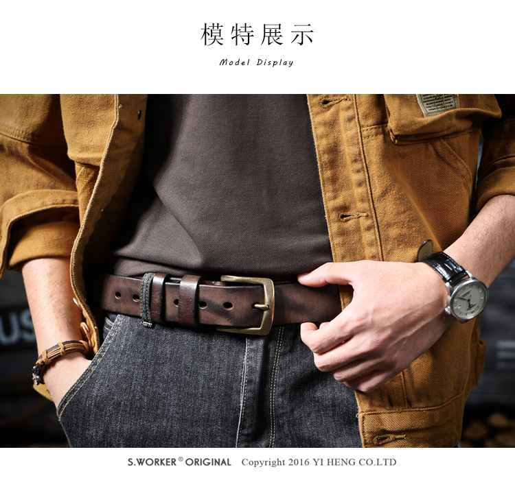 빈티지 캐주얼 탑 레이어 카우보이 남성 벨트 순수 구리 버클 벨트 클립 수제 가죽 벨트 간단한 올 매치 트렌디스토어 가기