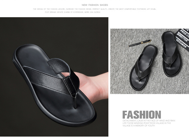 2024 새로운 슬리퍼 남성용 여름 패션 비치 신발 미끄럼 방지 샌들 의류 트렌디 미끄럼 방지 정품 가죽 플립 플롭 남성용스토어 가기