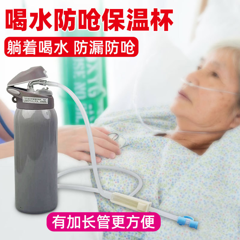 식수 sippy 컵 환자 임신 한 여성이 질식 및 누수를 방지하기 위해 누워있는 노인을 위해 묶인 짚 보온병 컵