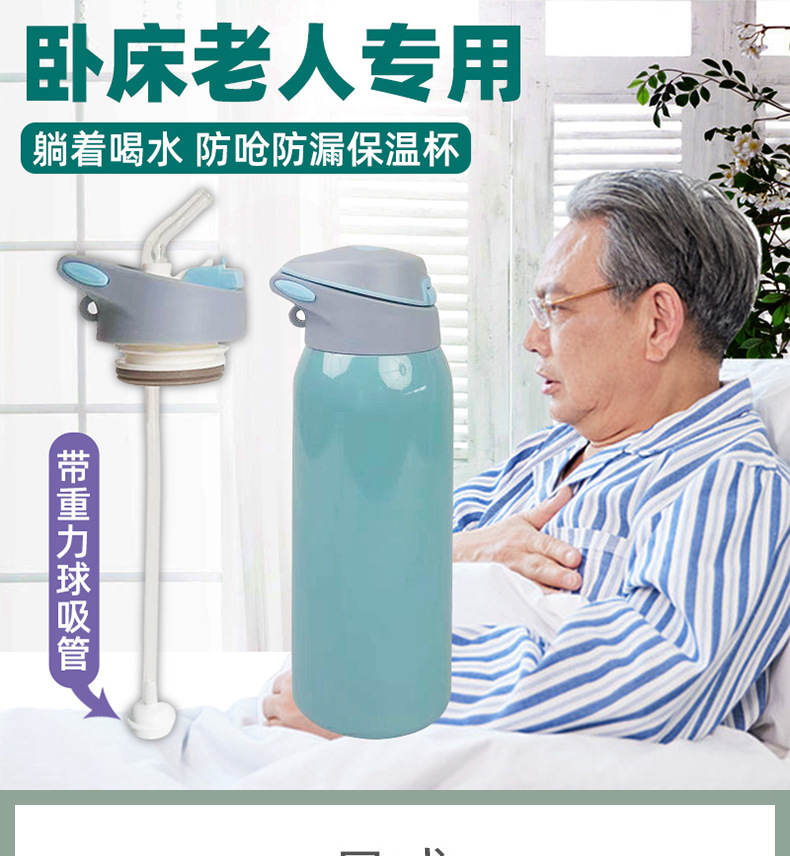 식수 sippy 컵 환자 임신 한 여성이 질식 및 누수를 방지하기 위해 누워있는 노인을 위해 묶인 짚 보온병 컵스토어 가기