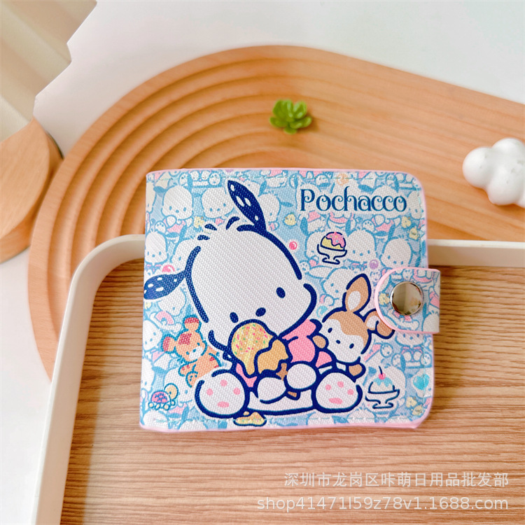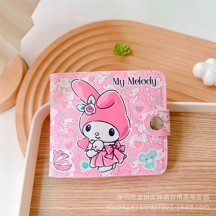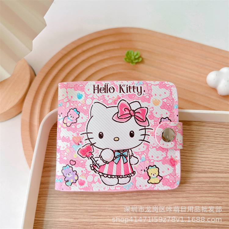 일본식 귀여운 소녀의 심장 접이식 짧은 지갑 쿨로 미카 가방 PC 개 동전 지갑 버튼 파우치