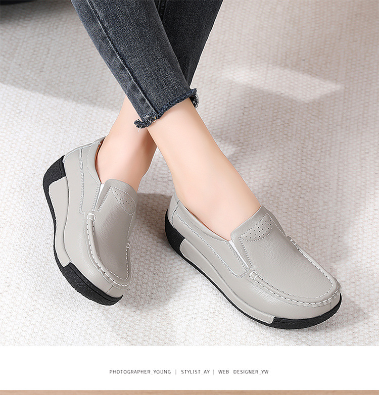 2023 봄과 가을 콩 신발 여성 싱글 레이어 신발 플랫폼 하단 얕은 입 부드러운 바닥 엄마 웨지 로킹 캐주얼 여성 신발