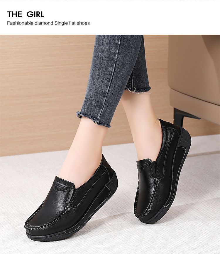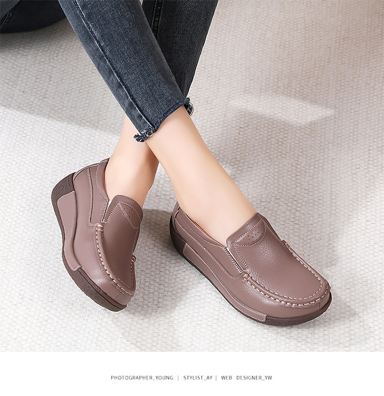 2023 봄과 가을 콩 신발 여성 싱글 레이어 신발 플랫폼 하단 얕은 입 부드러운 바닥 엄마 웨지 로킹 캐주얼 여성 신발스토어 가기