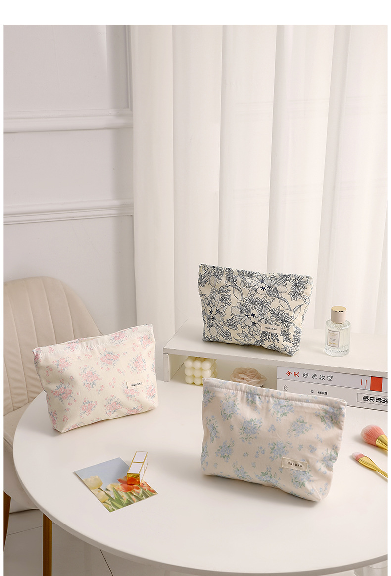 새로운 Ins 스타일 신선한 꽃 화장품 가방 여자 캔버스 화장품 가방 여행 휴대용 여성용 휴대용 보관 가방