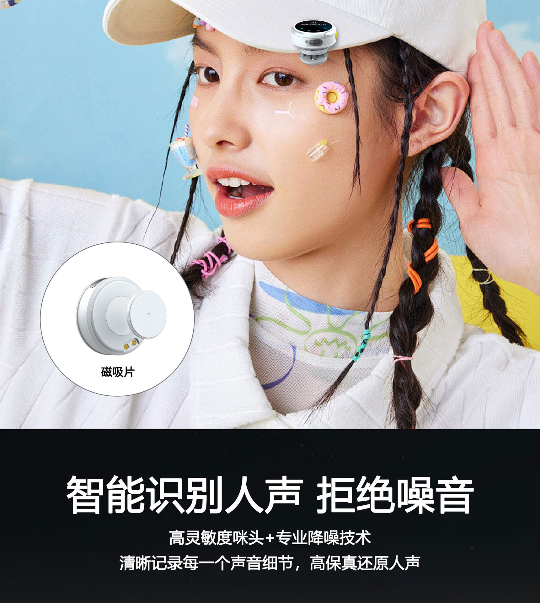 무선 라발리에 마이크, 휴대폰 라이브 방송, 판매 촬영용, 1대2 녹음, 노이즈 감소 마이크, 자석형